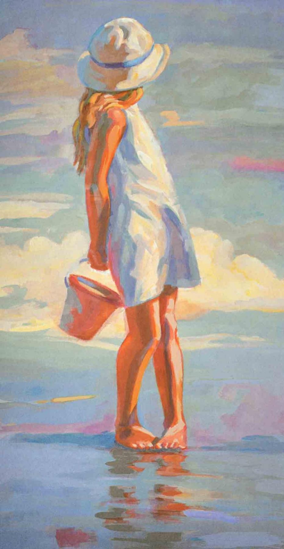Artist: Lucelle Raad (b. 1942) - Title: Golden Girl - Medium: Serigraph on Fine Art Paper - Signature: Hand-signed by the Artist - Limited Edition: 300 - Image Size: Approximately 25 Inches x 12.5 inches - Paper Size: Approximately 28.5 inches x 15.75 inches - Unframed - Details: This work comes with a Certificate of Authenticity - Biography: Many are touched by Lucelle's blending of the hopeful innocence of children in a commonplace setting. Each case awakens nostalgia for that youthful honesty and simplicity in all that view her work. The recipient of multiple awards, her most prized award was received at the world famous Washington Square Art Exhibit, an annual event in New York which is an invitational, juried show with over 500 artists from every corner of the globe. Lucelle's art graces many corporate, public, and private collections in every state in the union and in countries around the world.