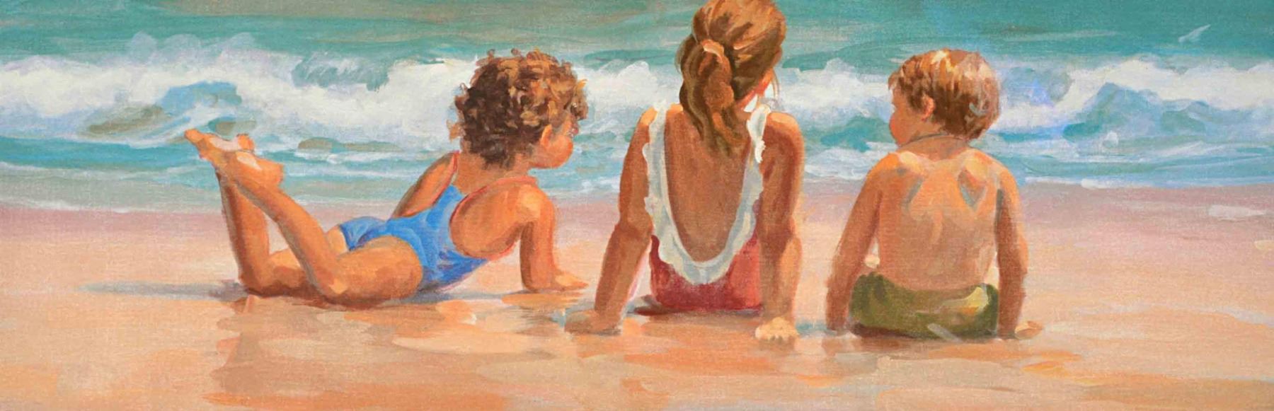 Artist: Lucelle Raad (b. 1942) - Title: Lazy Days - Medium: Serigraph on Fine Art Paper - Signature: Hand-signed by the Artist - Limited Edition: AP 100 - Image Size: Approximately 9 Inches x 25 inches - Paper Size: Approximately 13 inches x 28.5 inches - Framed: Unframed - Details: This work comes with a Certificate of Authenticity - Biography: Many are touched by Lucelle's blending of the hopeful innocence of children in a commonplace setting. Each case awakens nostalgia for that youthful honesty and simplicity in all that view her work. The recipient of multiple awards, her most prized award was received at the world famous Washington Square Art Exhibit, an annual event in New York which is an invitational, juried show with over 500 artists from every corner of the globe. Lucelle's art graces many corporate, public, and private collections in every state in the union and in countries around the world.