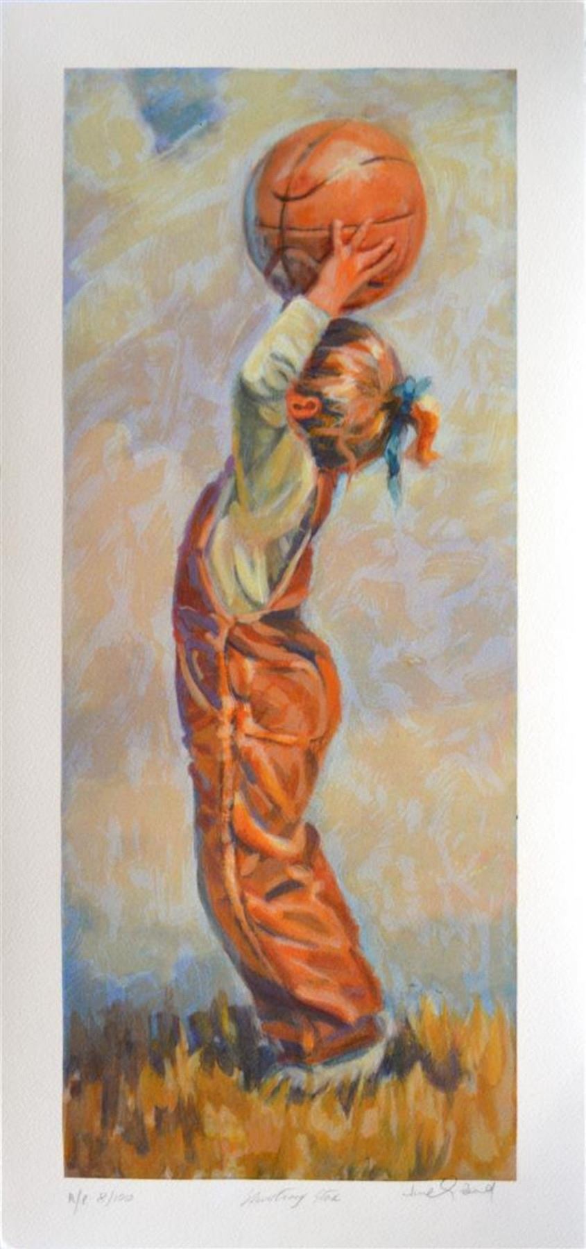 Artist: Lucelle Raad (b. 1942) - Title: Shooting Star - Medium: Serigraph on Fine Art Paper - Signature: Hand-signed by the Artist - Limited Edition: AP 100 - Image Size: Approximately 24 Inches x 10 inches - Paper Size: Approximately 27 inches x 12.75 inches - Unframed - Details: This work comes with a Certificate of Authenticity - Biography: Many are touched by Lucelle's blending of the hopeful innocence of children in a commonplace setting. Each case awakens nostalgia for that youthful honesty and simplicity in all that view her work. The recipient of multiple awards, her most prized award was received at the world famous Washington Square Art Exhibit, an annual event in New York which is an invitational, juried show with over 500 artists from every corner of the globe. Lucelle's art graces many corporate, public, and private collections in every state in the union and in countries around the world.