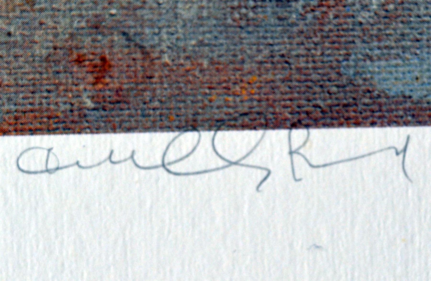 Artist: Lucelle Raad (b. 1942) - Title: Sweet Talk - Medium: Offset Lithograph on Paper - Signature: Hand-signed by the Artist - Image Size: Approximately 12 Inches x 7 inches - Paper Size: Approximately 14 inches x 9 inches - Unframed - Details: This work comes with a Certificate of Authenticity - Biography: Many are touched by Lucelle's blending of the hopeful innocence of children in a commonplace setting. Each case awakens nostalgia for that youthful honesty and simplicity in all that view her work. The recipient of multiple awards, her most prized award was received at the world famous Washington Square Art Exhibit, an annual event in New York which is an invitational, juried show with over 500 artists from every corner of the globe. Lucelle's art graces many corporate, public, and private collections in every state in the union and in countries around the world.