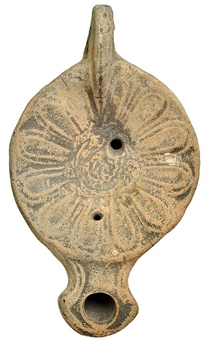 Lucerna. Decorada con motivo floral. Siglos I-III d.C. Terracota. Longitud 12,3 cm.