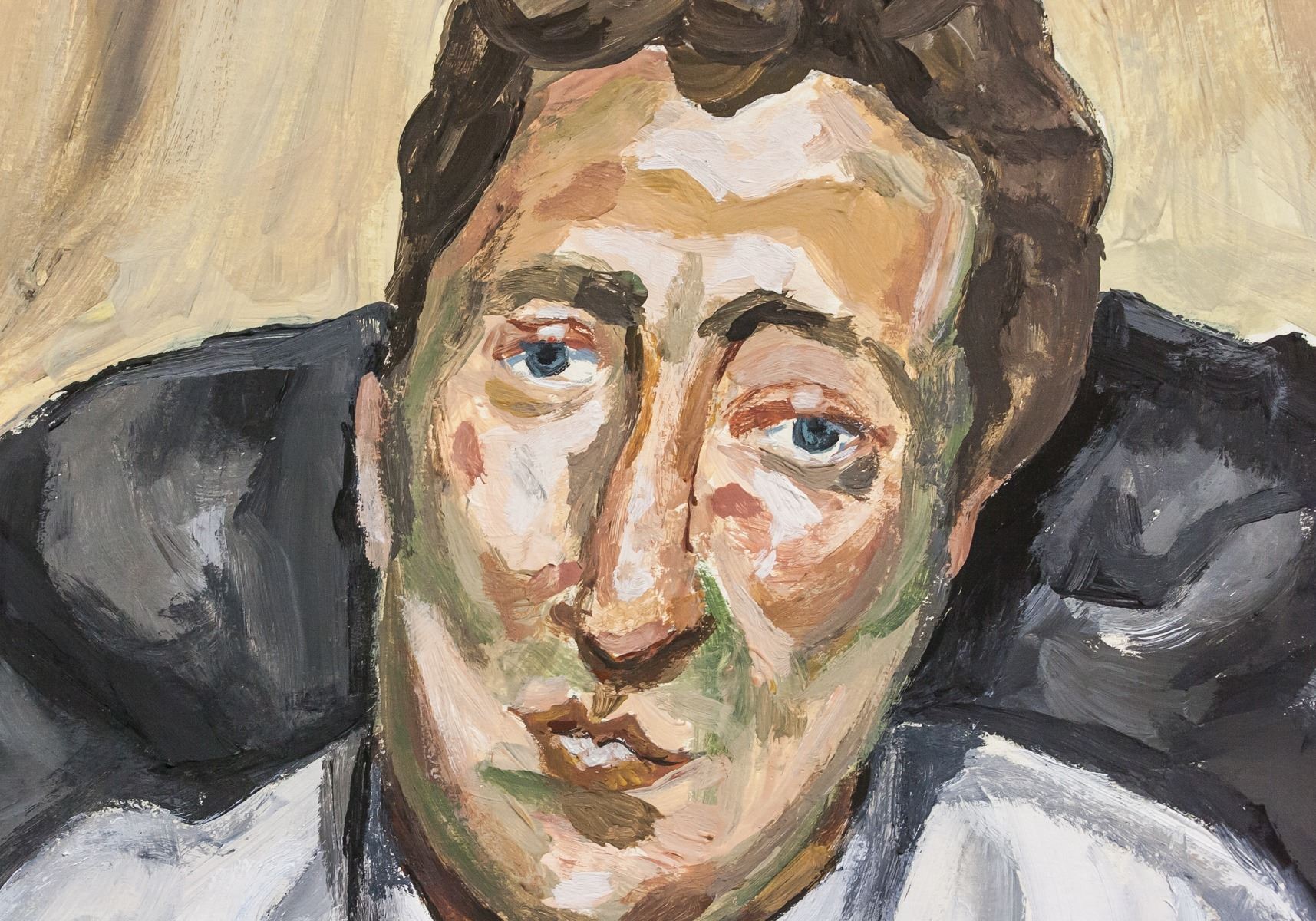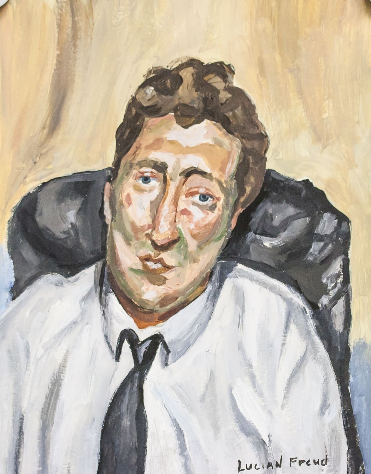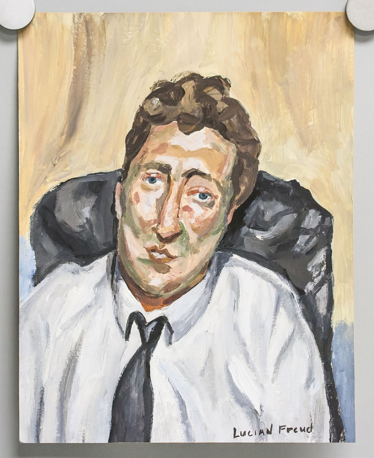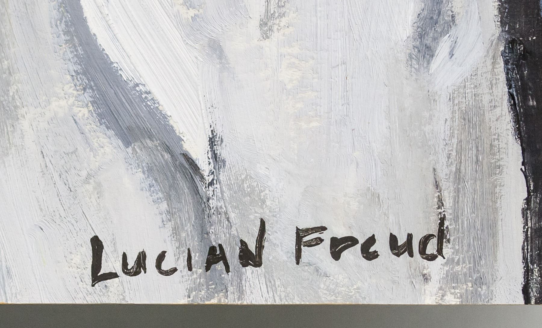 Oil and gouache on paper. Featuring portait of a man in a white shirt and black tie. Signed "Lucian Freud" in the bottom right corner. Faint stamp reading "FINE ARTS LONDON [illegible]" on verso. Inscribed with "#220" on verso. Attributed to Lucian Freud (1922-2011, British). 20 x 25.2 cm (10 x 10.75 in). Provenance: This lot carries limited provenance from a Southern Ontario estate