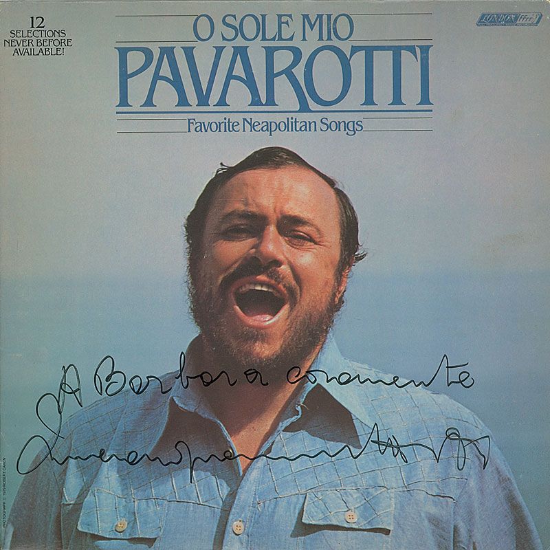 O Sole Mio album signed and inscribed on the front cover in black felt tip and dated 1980. In fine condition. The record is included.