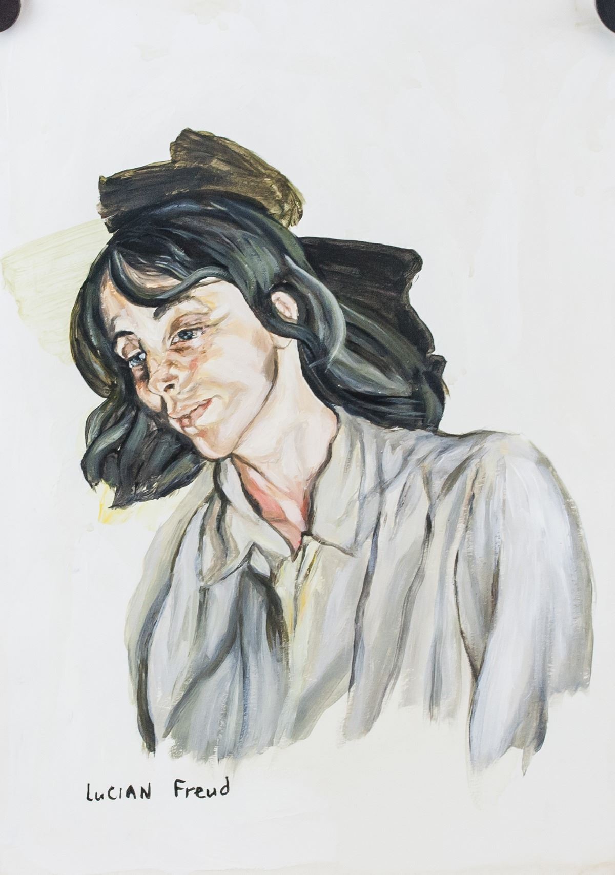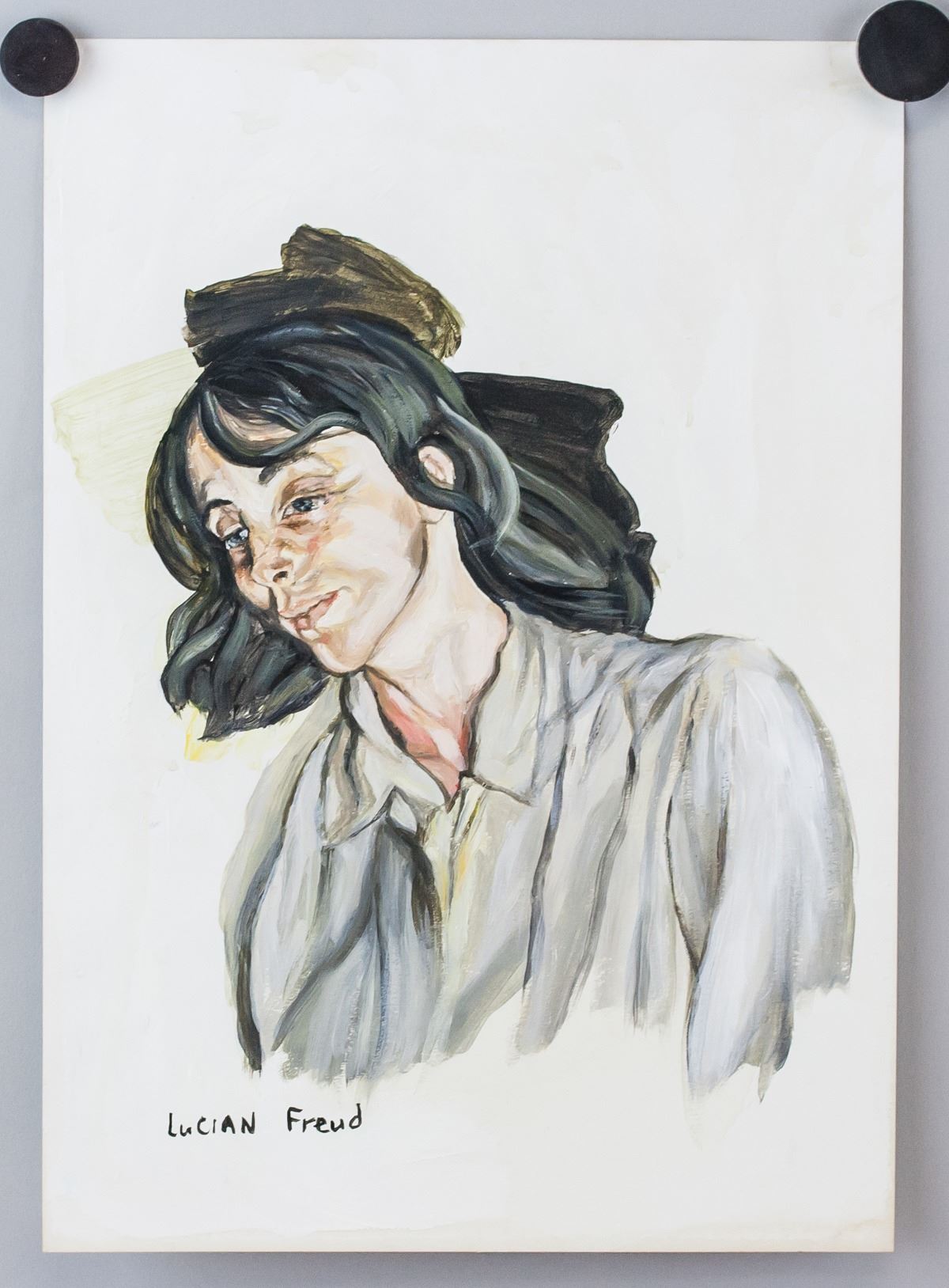 Oil and gouache on paper. Featuring a portrait of a woman. Signed Lucian Freud on the lower left corner. Inscribed LF 36 in pencil and stamped Contemporary Masters Exhibition on verso. Attributed to Lucian Freud (1922-2011, British). 29.5 x 21 cm (11.5 x 8.25 inches). PROVENANCE: This lot carries limited provenance from a Southern Ontario estate