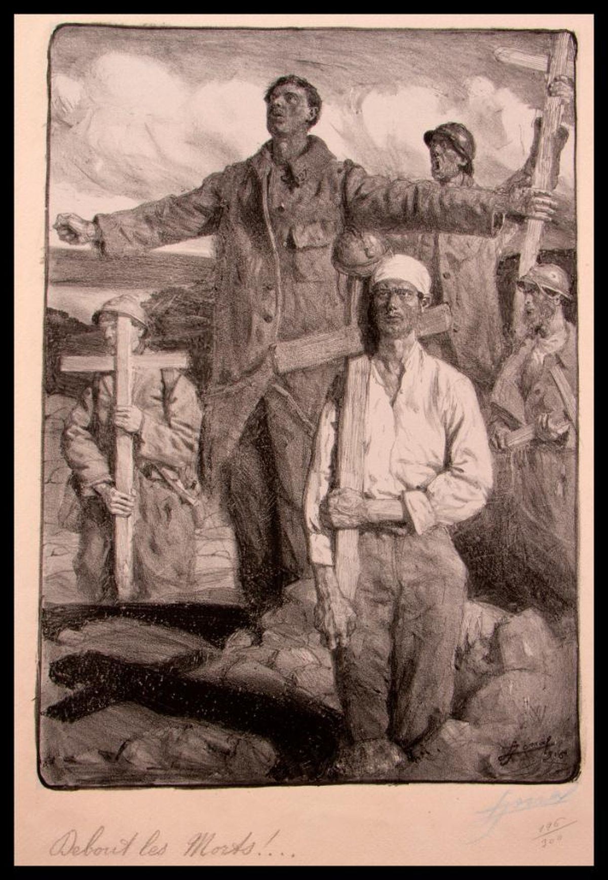 Title: "Les Grandes Vertus Francaises" Artist: Lucien Hector JONAS (1880-1947). Lithograph ed: 196 / 300. Signed: pencil signed. Size: 23 1/2 x 16 3/4 in. Condition: overall condition good.