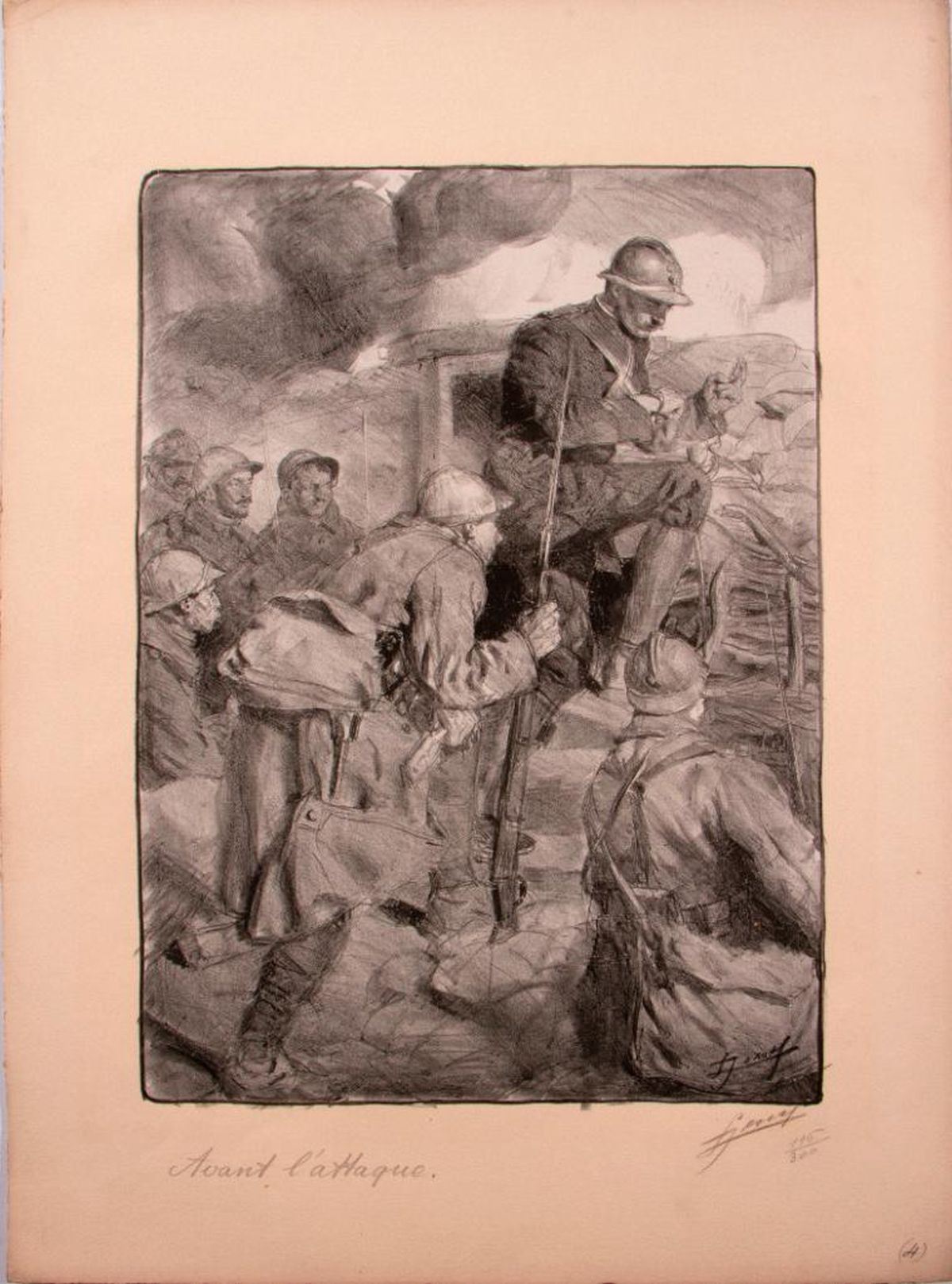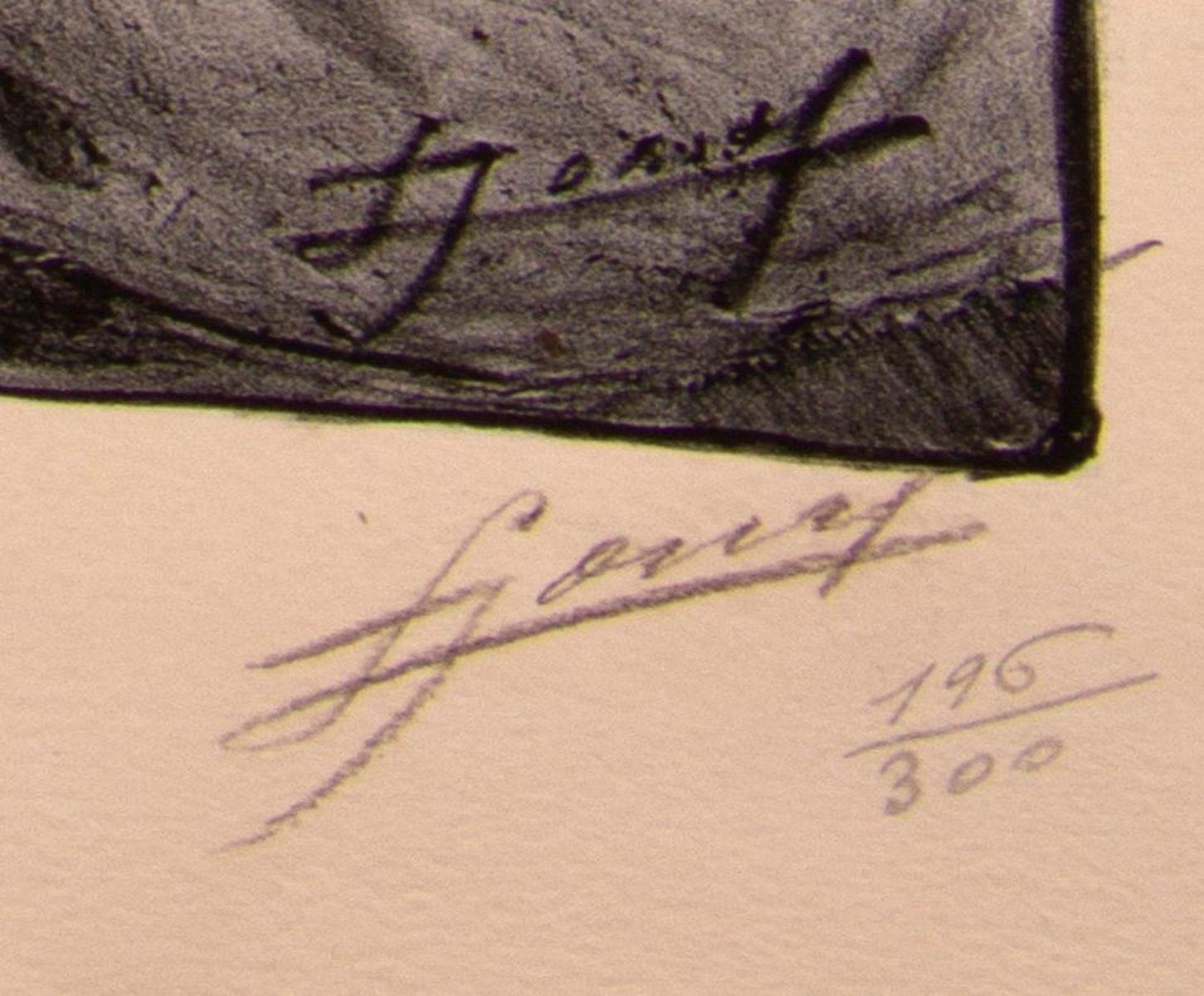 Title: "Les Grandes Vertus Francaises" Artist: Lucien Hector JONAS (1880-1947). Lithograph ed: 196 / 300. Signed: pencil signed. Size: 23 1/2 x 16 3/4 in. Condition: overall condition good.
