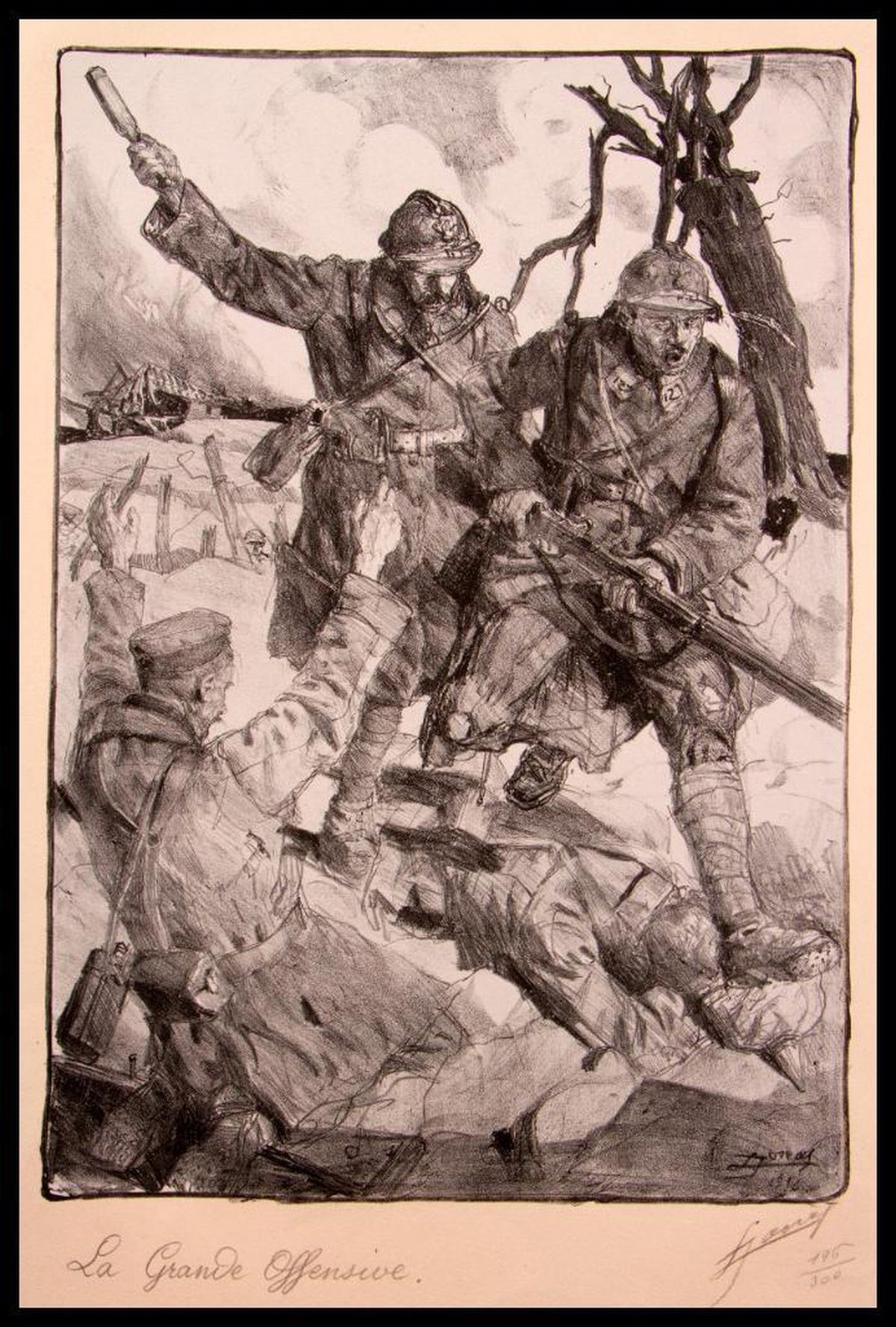 Title: "Les Grandes Vertus Francaises" Artist: Lucien Hector JONAS (1880-1947). Lithograph ed: 196 / 300. Signed: pencil signed. Size: 23 1/2 x 16 3/4 in. Condition: overall condition good.