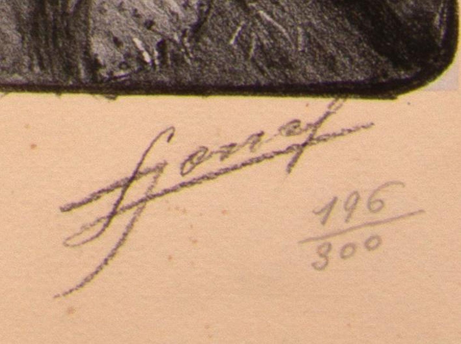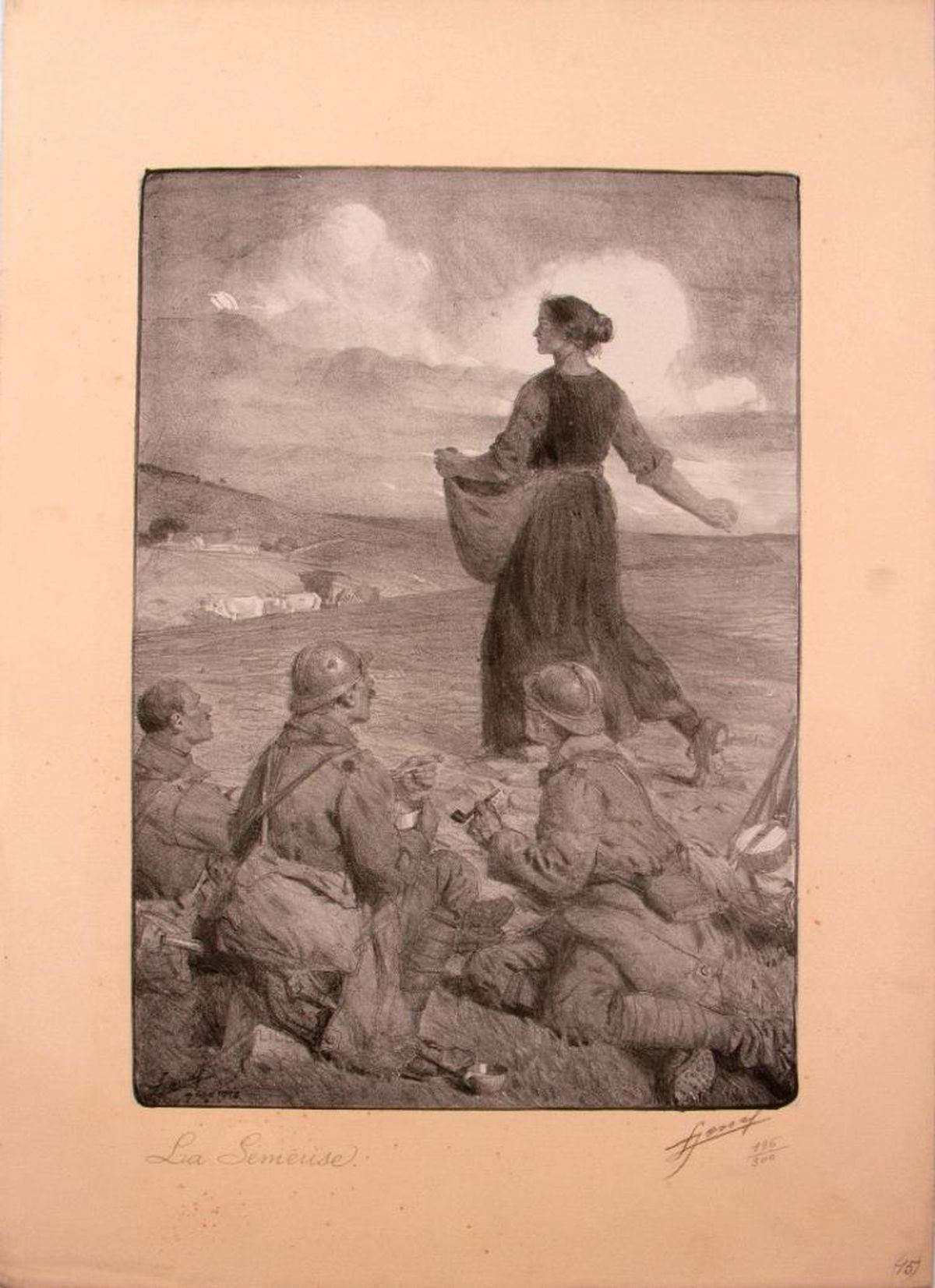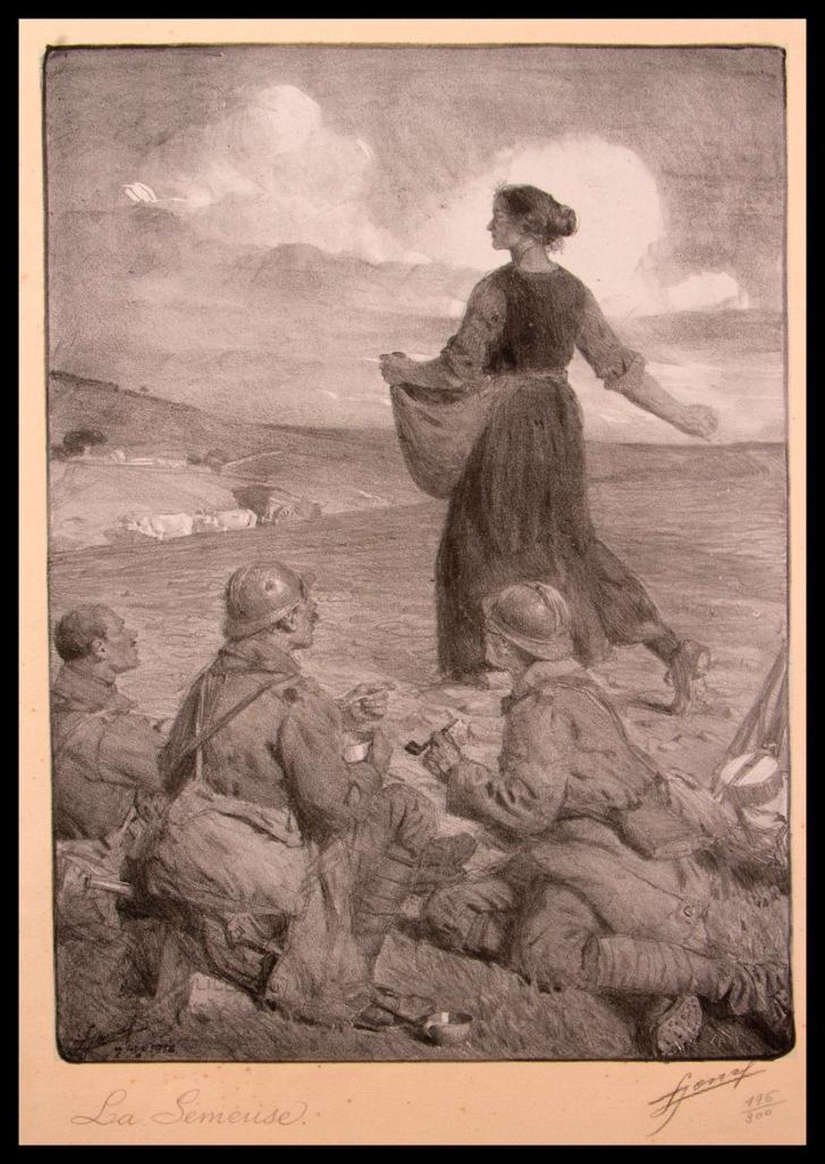 Title: "Les Grandes Vertus Francaises" Artist: Lucien Hector JONAS (1880-1947). Lithograph ed: 196 / 300. Signed: pencil signed. Size: 23 1/2 x 16 3/4 in. Condition: overall condition good.