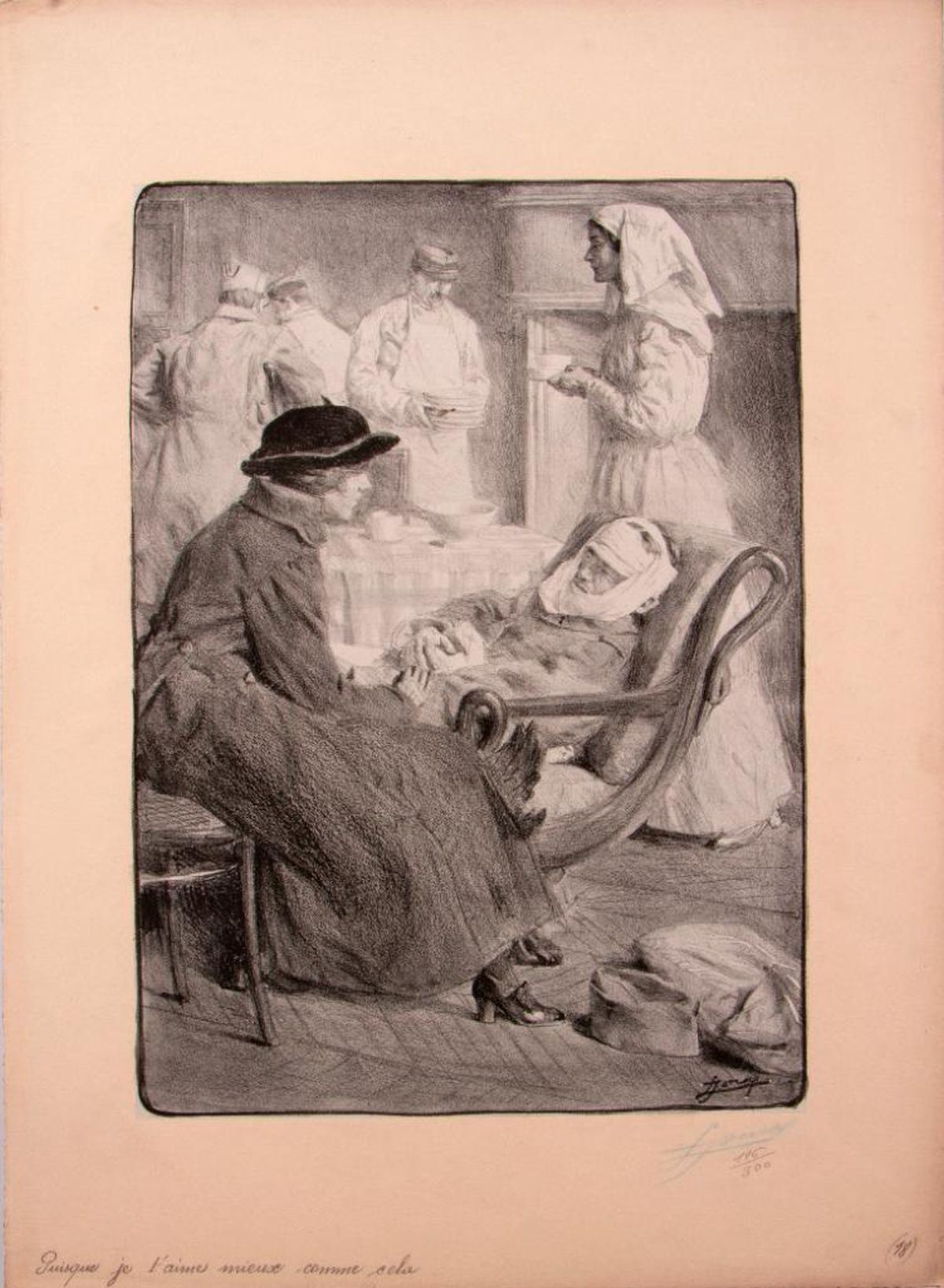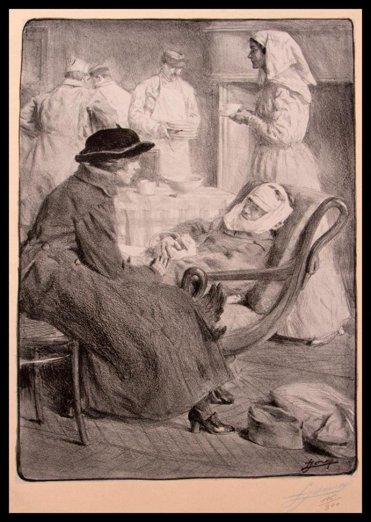 Title: "Les Grandes Vertus Francaises" Artist: Lucien Hector JONAS (1880-1947). Lithograph ed: 196 / 300. Signed: pencil signed. Size: 23 1/2 x 16 3/4 in. Condition: overall condition good.