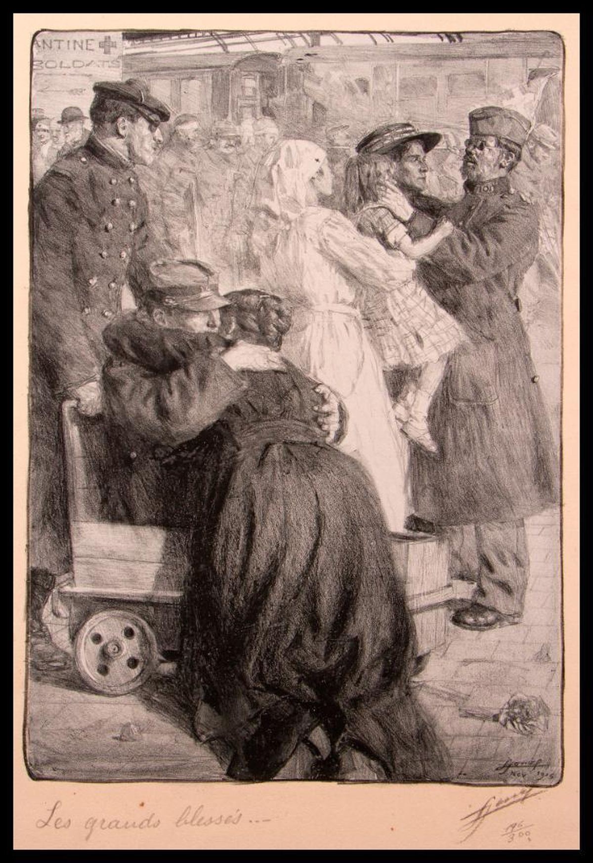 Title: "Les Grandes Vertus Francaises" Artist: Lucien Hector JONAS (1880-1947). Lithograph ed: 196 / 300. Signed: pencil signed. Size: 23 1/2 x 16 3/4 in. Condition: overall condition good.