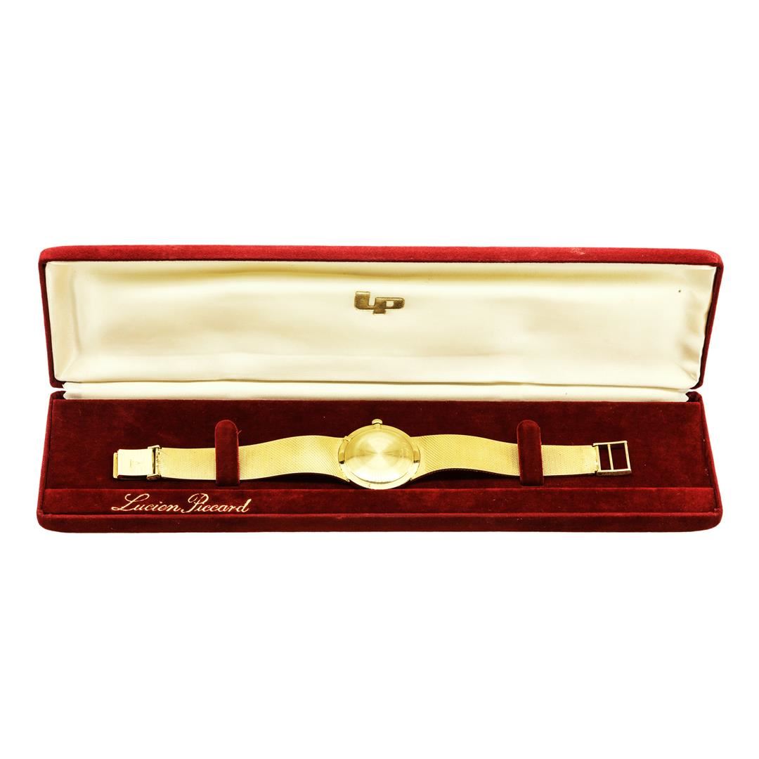 One Lucien Piccard 14K Gold Quartz Wristwatch with Box, the total weight of the watch including the movement is 49.06 grams.