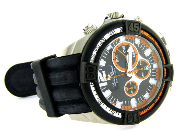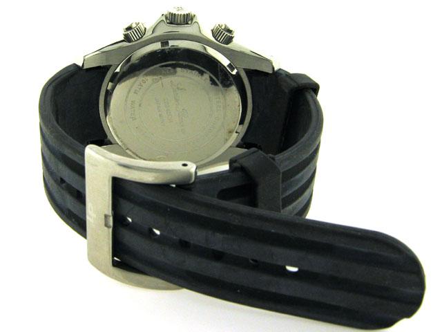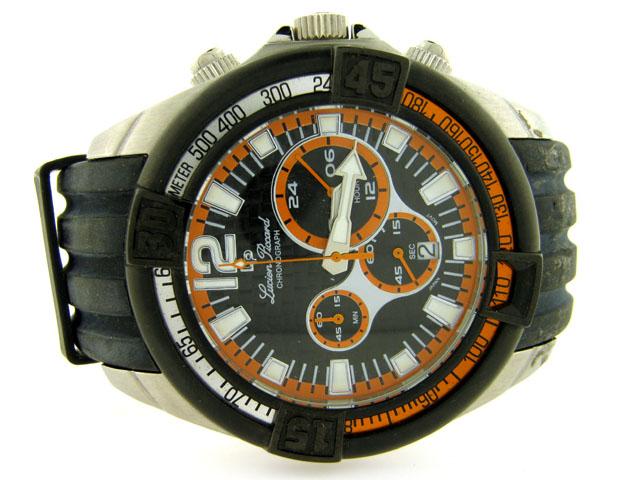 This is a Lucien Piccard Men's Volcano Rubber Strap Watch - 26942OR with the following features: All stainless steel; Chronograph; Japan movement; Rubber band; and Water resistant.