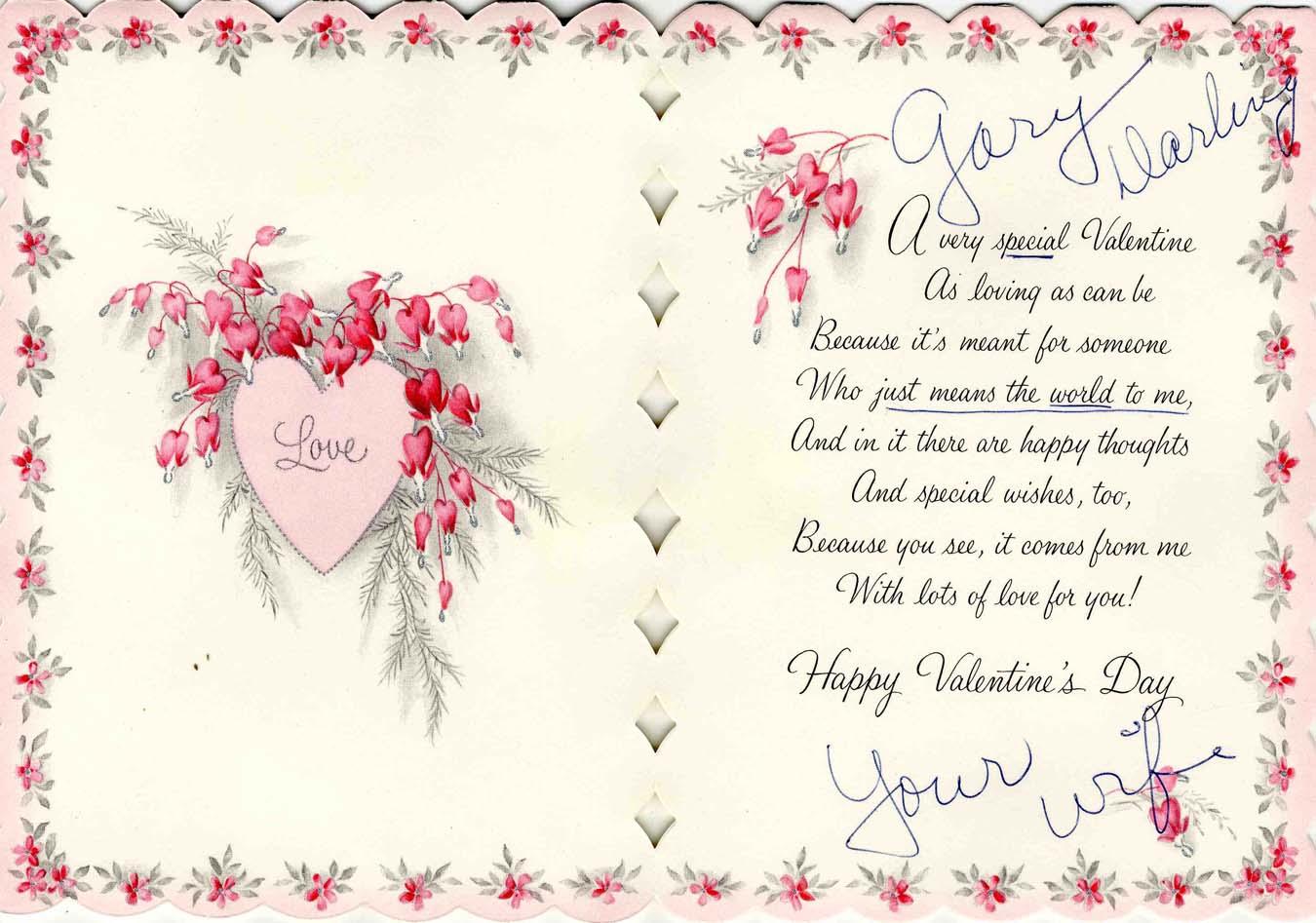 Personal Valentine's Day card from Lucille Ball to her husband Gary Morton. On the inside of the card Lucy writes, ''Gary Darling'' and signs it ''Your wife.'' She also underlines special passages of the card to express her love. 5'' x 6.75'' card is very lightly toned, otherwise fine.