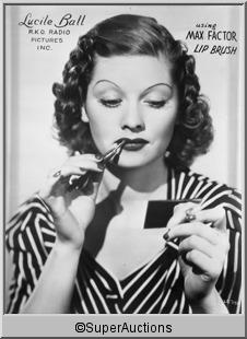 Lucille Ball from The Max Factor Collection / (1) 8 x 10 Negative Max Factor Make-Up Advertisement Featuring Lucille Ball Posing with Max Factor Lip Brush / Lucille Ball R.K.O. Radio Pictures, Inc. / LB.718