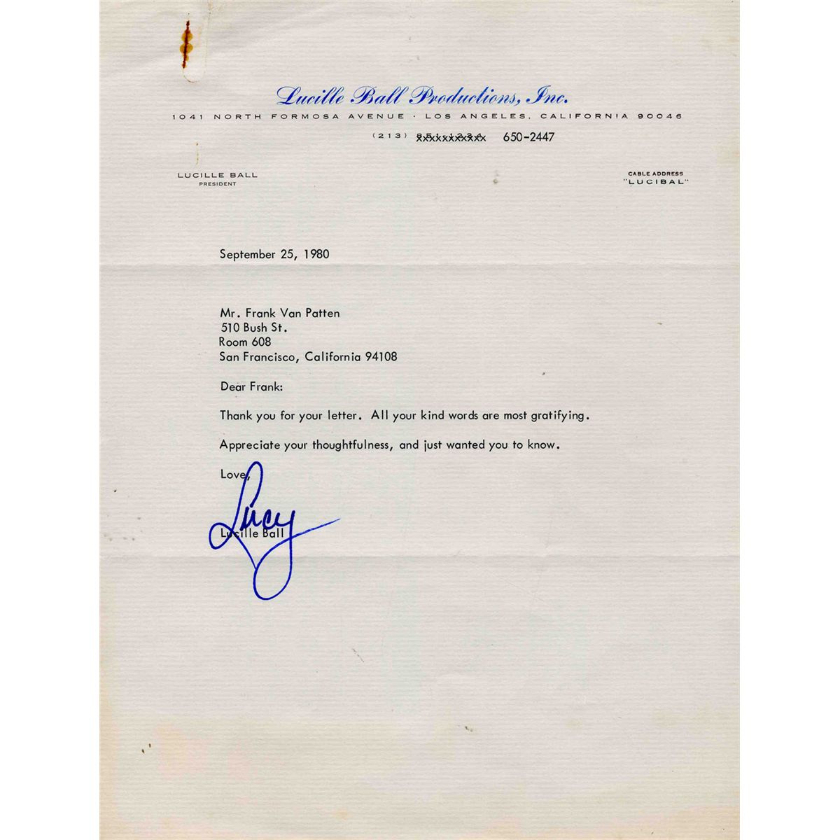 Lucy Ball Rare Typed Letter Signed -- ''Lucy'' on Lucille Ball Productions Inc. Letterhead -- 9 September 1980 -- 8.5'' x 11'' -- Very Good