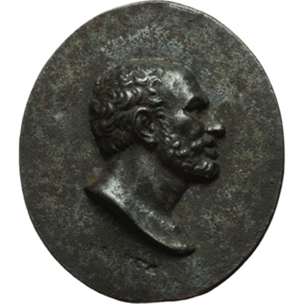 Medaglie e Placchette. Lucio Anneo Seneca (4 a.C-65 d.C.). Placchetta sec. XV-XVI, Italia centrale. 53X45mm. Molinier I vol., 56 (questo esemplare). Ferro. RR. Fusione originale. Ex Helbing, Mvºnich1900, 2428.