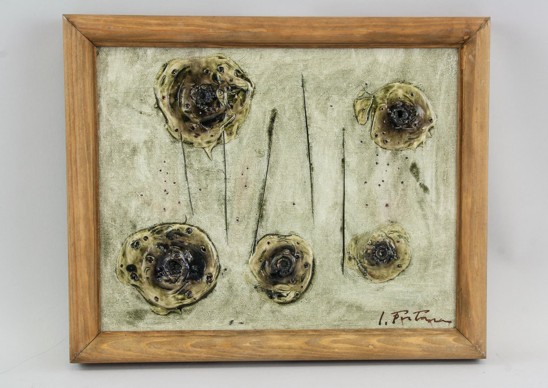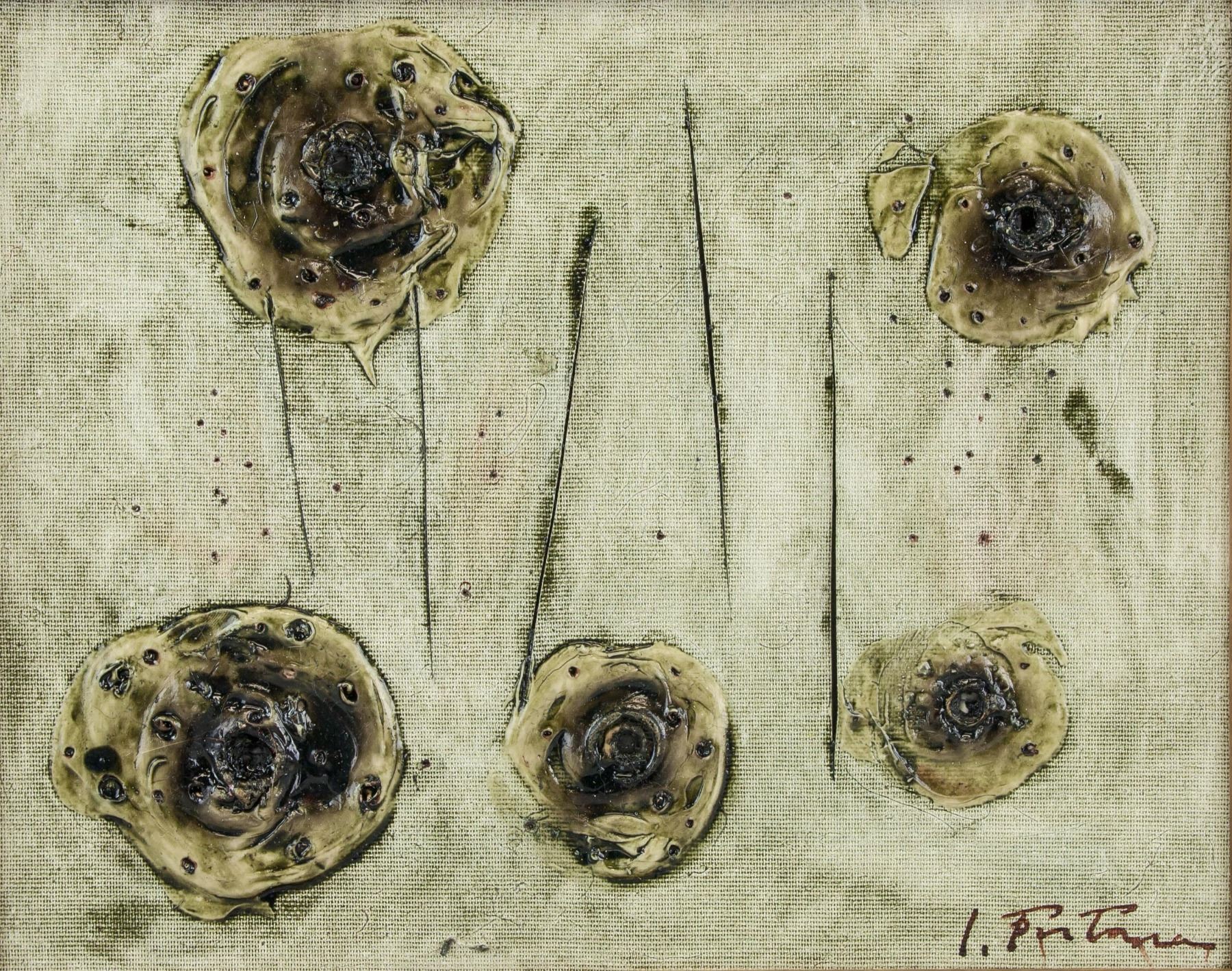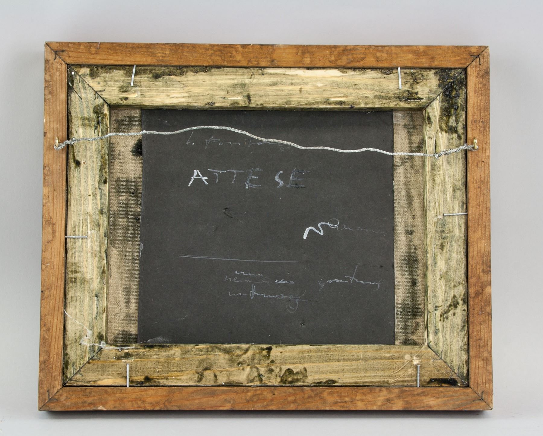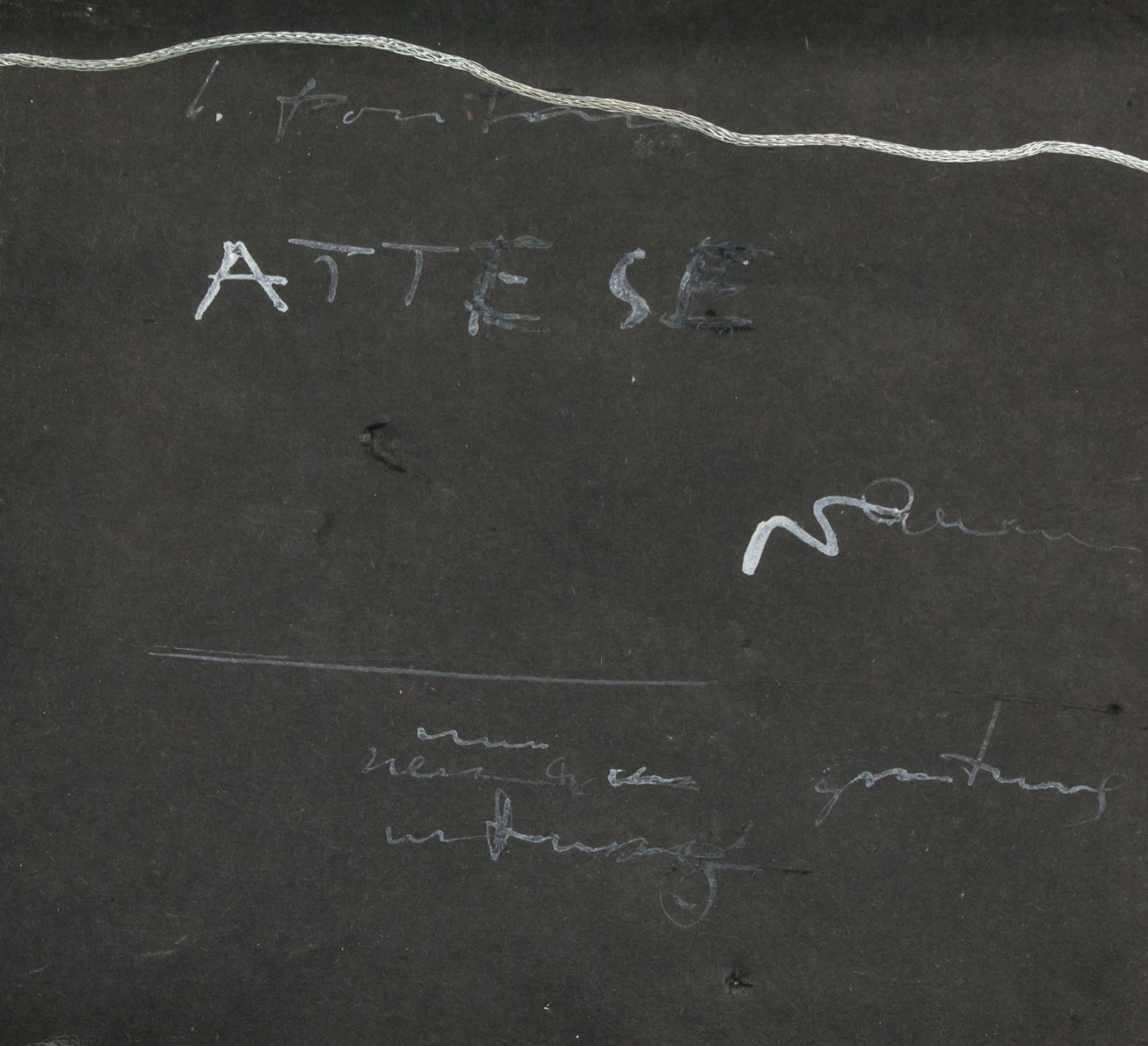 Oil on canvas abstract painting. Signed and attr. Lucio Fontana (Italian/Argentinian, 1899-1968). 9 x 11.5 inch (22.86 x 29.21 cm). Throughout his prolific career, Lucio Fontana demonstrated a relentless interest in the relationship between surface and dimensionality. Fontana formulated the theory of Spatialism in a series of manifestos dating from the late 1940s to early 1950s, proposing that matter should be infiltrated by energy in order to generate dimensional, dynamic artistic forms. Fontana implemented this theory in his series Concetto Spaziale (‘spatial concept’), punching holes in the picture plane and slicing through his canvases in order to expose the dimensional space beneath. Fontana’s innovative theories prefigured later developments in environmental art, performance art, and Arte Povera. PROVENANCE: Southern Ontario Estate