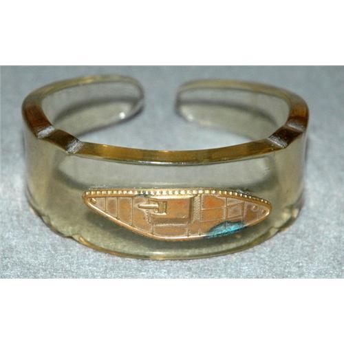 <tr><td>Title:Lucite Cuff Bracelet with Copper Detailing</td></tr>