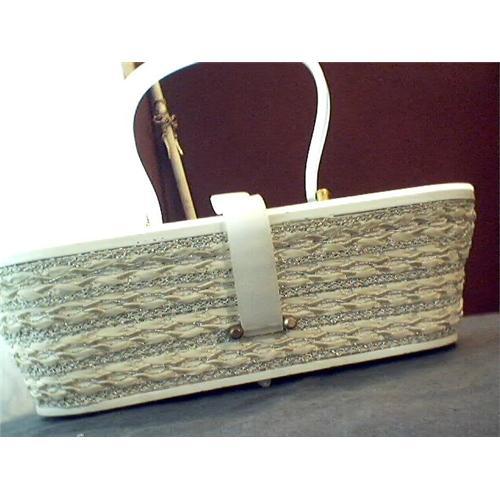 A very fine example of the times in excellant condition this 50s/60s era purse is made of lucite with a stencil in white of a fan basket weave base and silk lined a one to buy for thoes purse people to collect or use