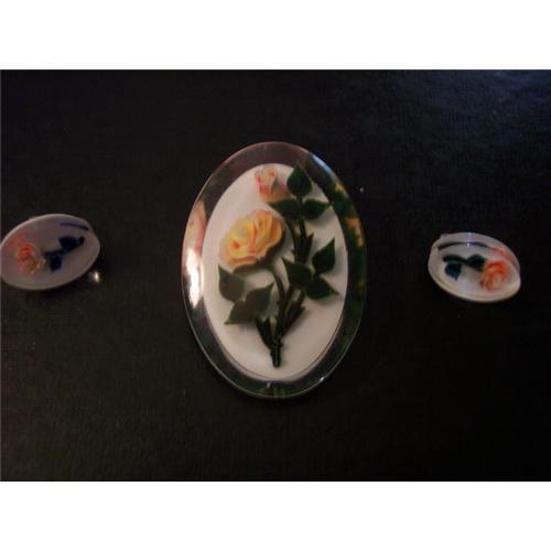 <tr><td>Title:Lucite Pin and Earrings with Yellow Roses</td></tr>