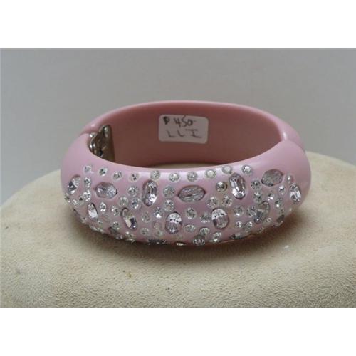 <tr><td>Title:Lucite Pink Hinged Rhinestone Bangle</td></tr>