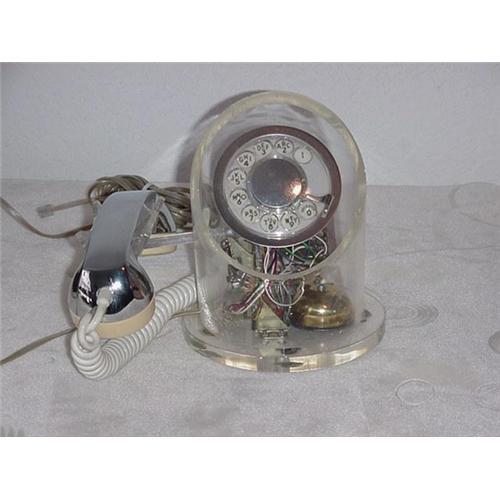 A 1950's-1970's lucite telephone, rotary dial with chrome receiver marked Northern Telecom Inc. made in USA, phone is 7 3/4" tall, base is 6 1/2" in diameter. Phone does work and is in good condition the works are visible as shown. As seen in the photo there is some frosting to the inside of the case by the receiver. A great piece to add a retro touch to your interior.