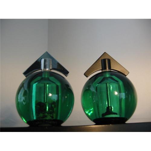 This set of Salt and Pepper Shaker is gorgeous. The color of green and clear lucite, with accent of chrome and black plastic toppers makes decorative statement. This set is in excellent condition. Not new! The Geometric Modern style with Art deco flair absolutely breath taking. They are Lovely. Each 4.5 inch Tall, Circular about 4 inch wide and 1.5 in diameter. Nice table ware!