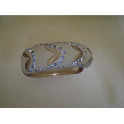 Gorgeous clear Lucite with pale blue sparkling rhinestones as pictured on pg 150 of The Best of Bakelite. This clamper is in excellent condition with all the rhinestones and a sturdy hinge. The coating on the rhinestone front looks almost like powder making the bracelet extremely feminine. It is beautifully carved, too. A real find.
