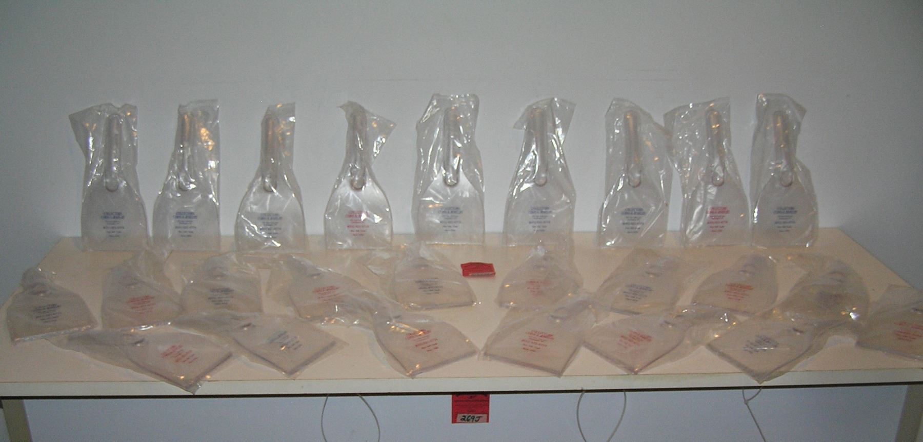 Large group of Lucite style hard plastic ice scrapers with advertising est. value $65.00-$75.00