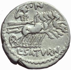 Repubblica Romana. Lucius Appuleius Saturninus. Denario, 104 a.C. D/ Testa di Roma a sinistra. R/ Saturno in quadriga a destra. Sopra, punto e N. In esergo: L. SATVRN. Cr. 317/3a. B.1. AG. g. 3.83 mm. 18.00 Bel BB+. Fondi lucenti.