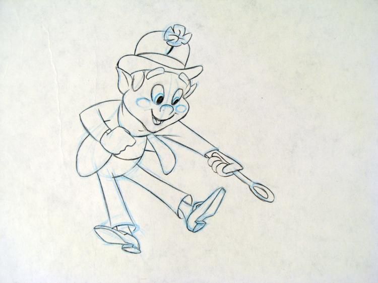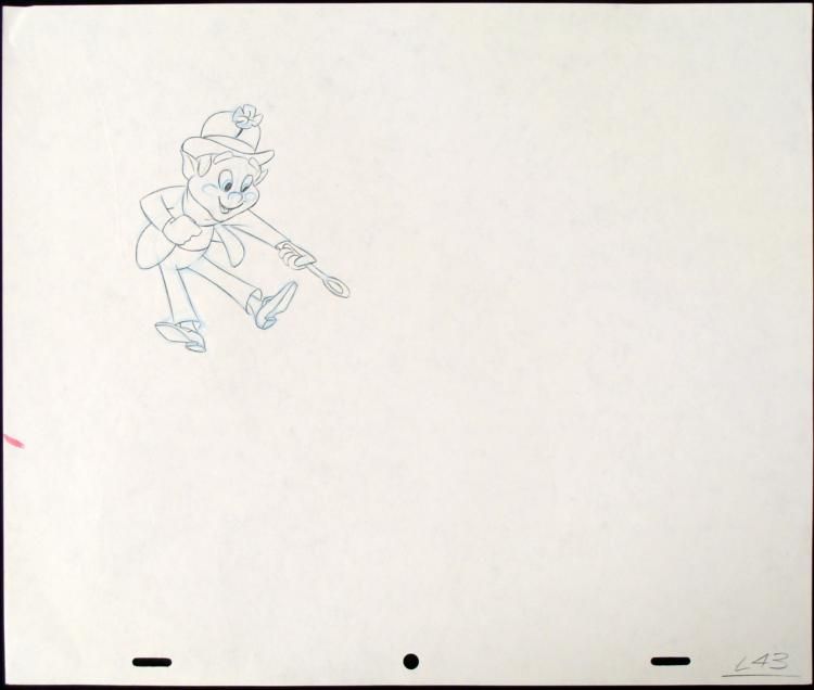An advertising company employed by General Mills and Company suggested revolving the marketing of the new cereal around the idea of charm bracelets. Thus, the charms of Lucky Charms were born. The mascot, Lucky the Leprechaun (originally called L.C. Leprechaun), * created in 1963, is a cartoon character whose voice was supplied by Arthur Anderson until 1992. * * * * * Your wish is my command * * * Original "rough" animation drawing, in non-photo blue and black with the notations in black.Overall size is a 12-field drawing that is 10 1/2" × 12 1/2"Very Good Condition * * * Traditional animation is a multi-step process which includes various types of art techniques. Drawings are a key part of the process, in which the animator creates the design and movement of the characters. Drawings are then transferred onto acetate cels * (by hand-inking and/or photo copying) to create a production cel, which is then hand painted on the back side, using paint colors chosen and approved by the creator of the series. * * * * * The drawing is ready to be matted and framed. The animators notations are located at the bottom of the drawing. There is some creasing to the top of the drawing. * *