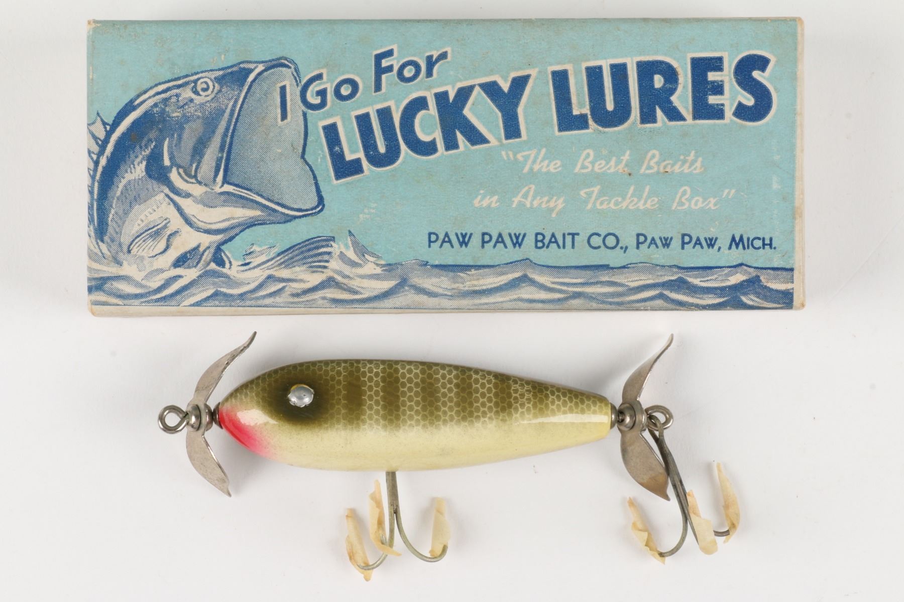 Paw Paw Bait Co., United States. Boxed. Material: Wood. Quantity: 2. Grade: VG. 5.25" boxes. Est. $75-100.