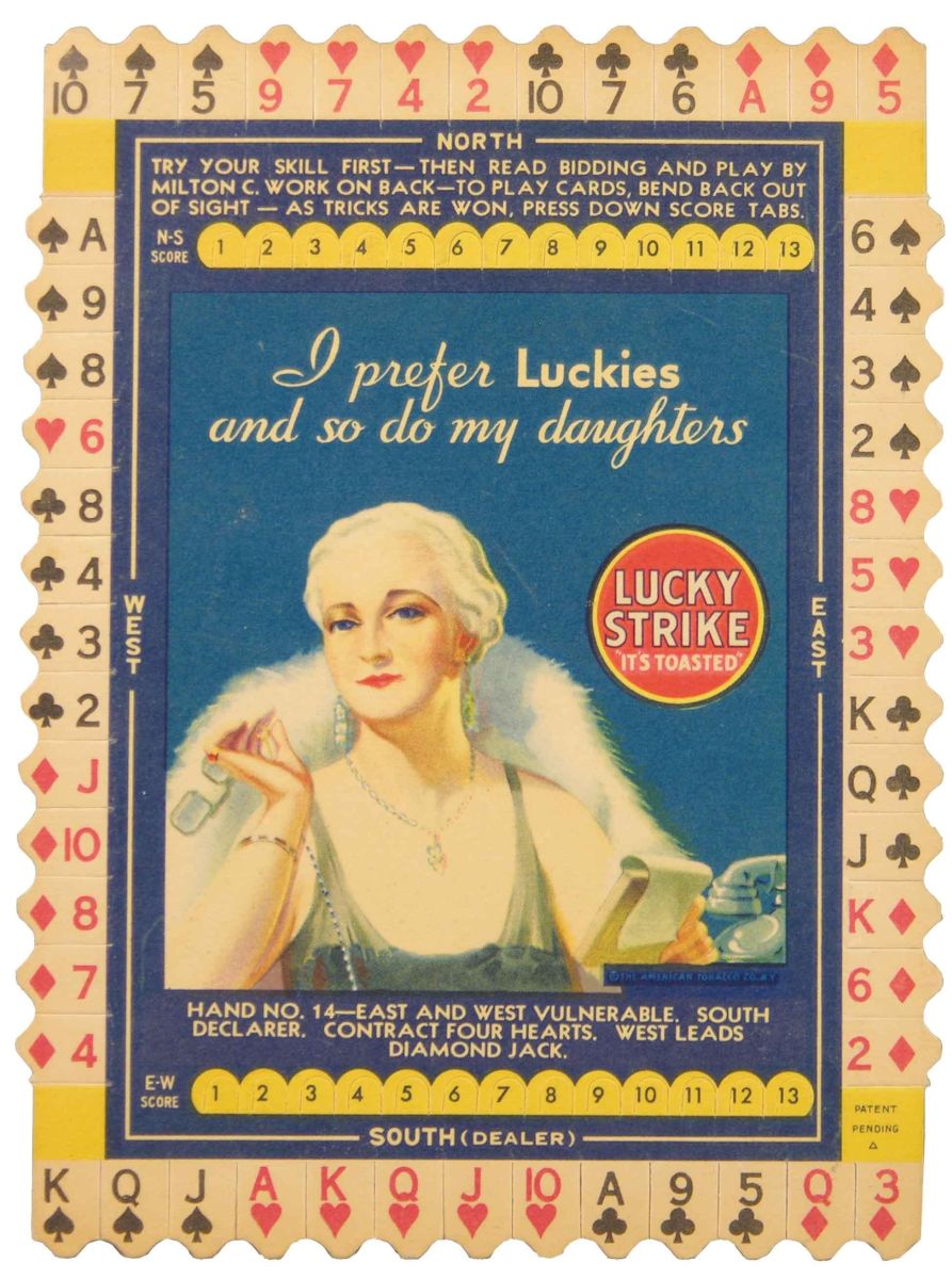 Lucky Strike Trade Card with novelty playing card game. Excellent condition. 4 X 5 1/2 inches.