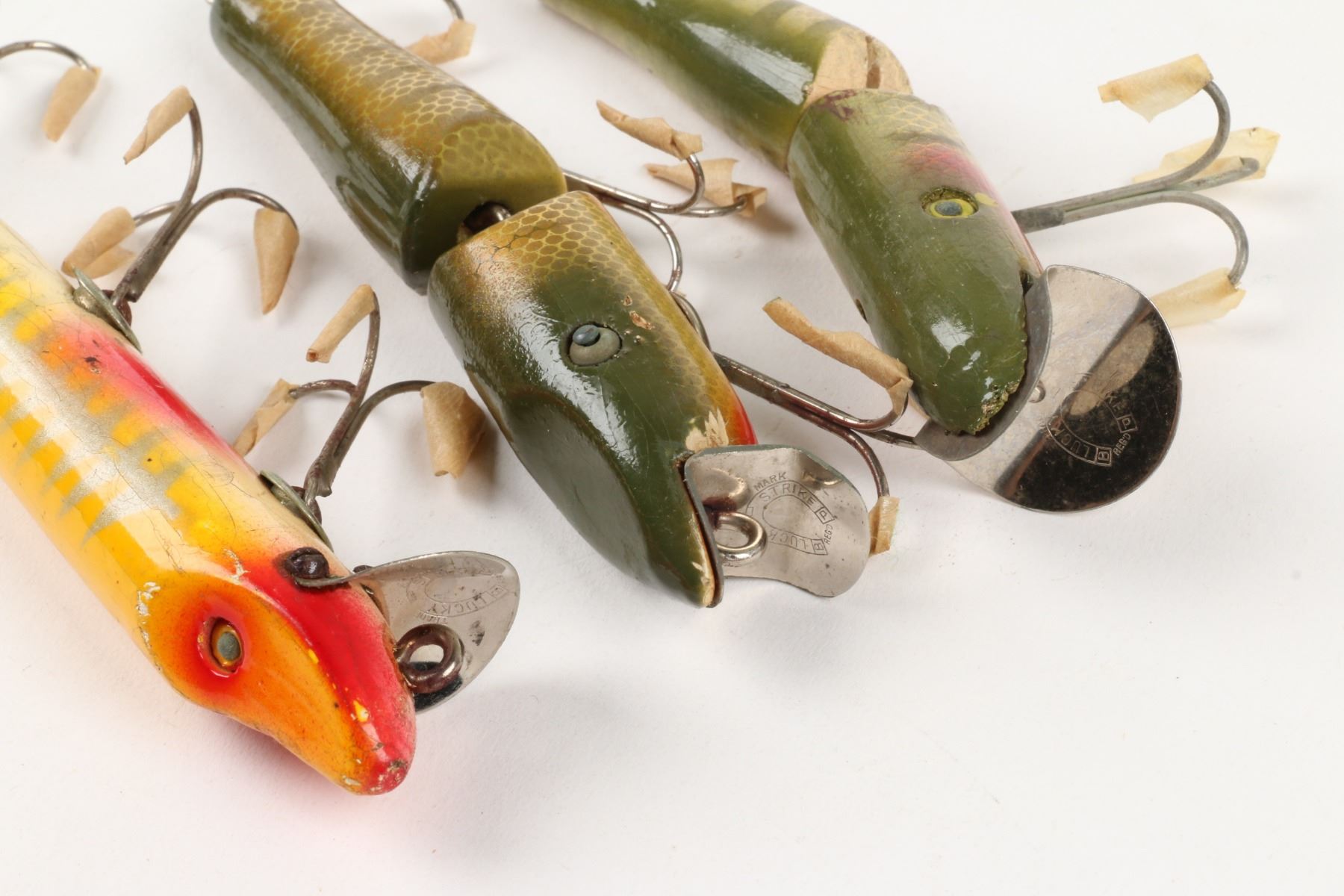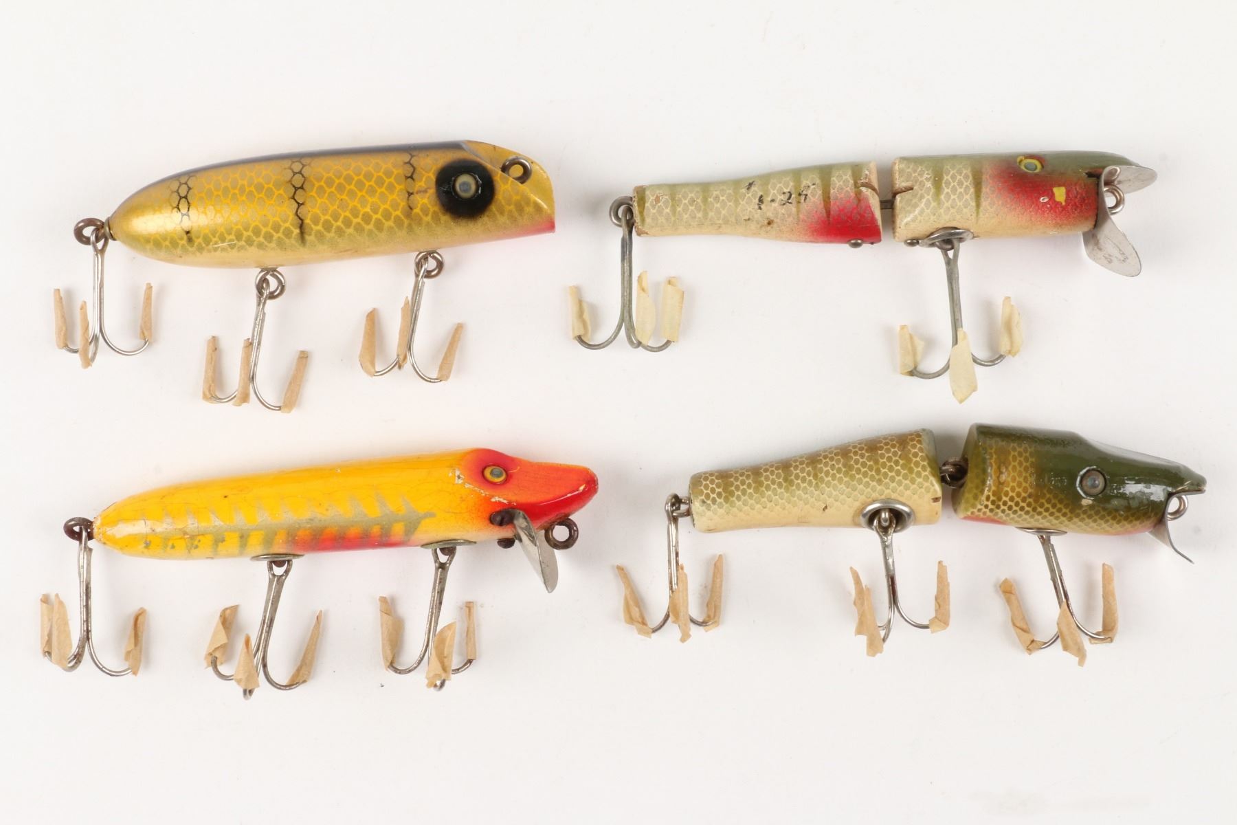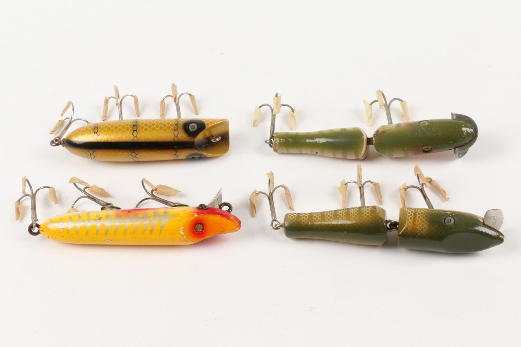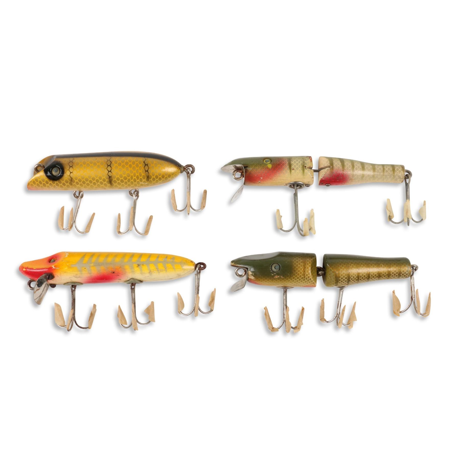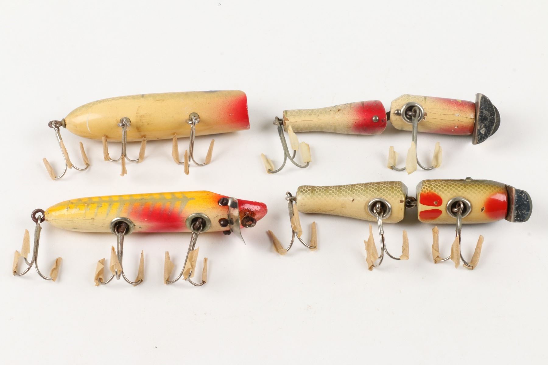 Lucky Strike Bait Works, Canada. 1940s. Material: Wood. Quantity: 4. Grade: G. 3.5" - 4" each. Est. $100-125.