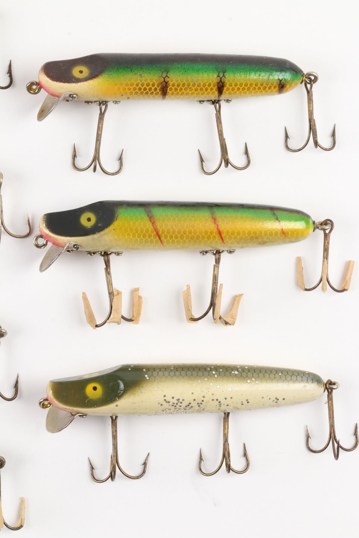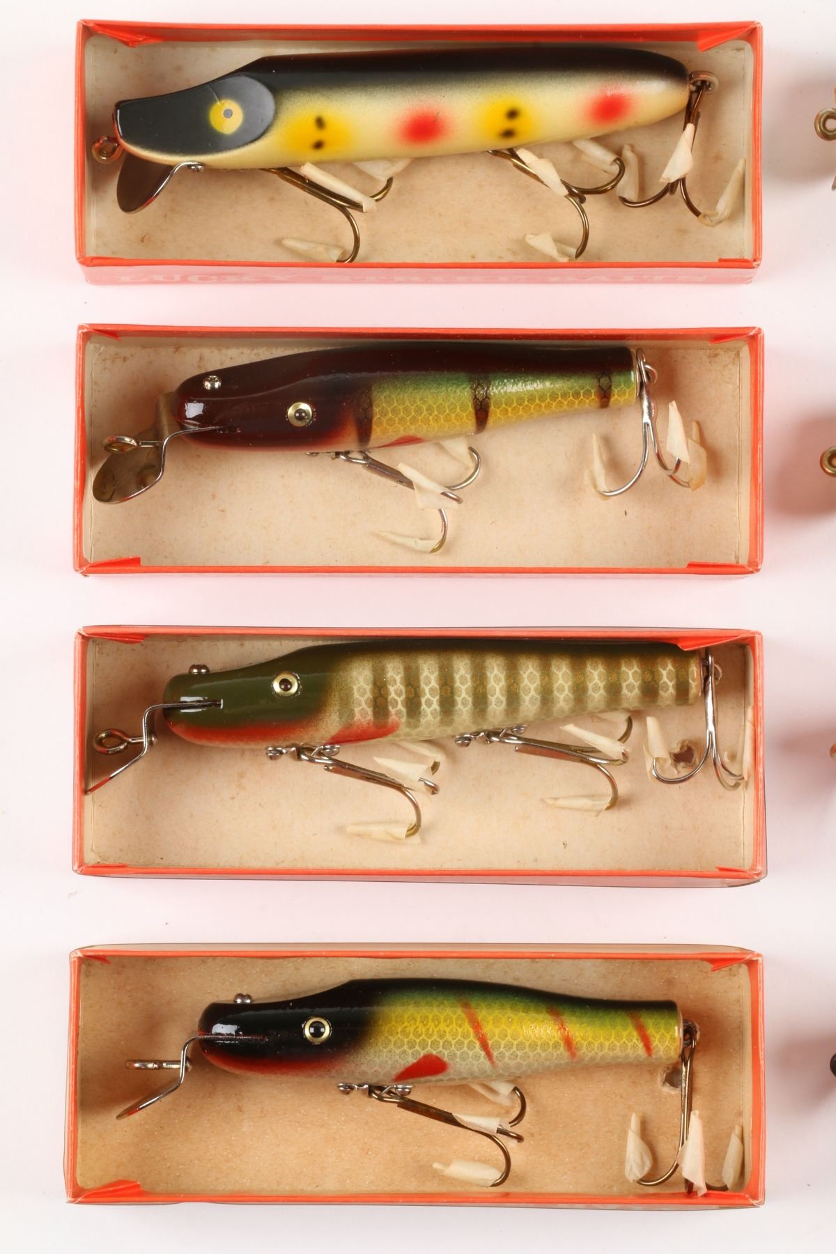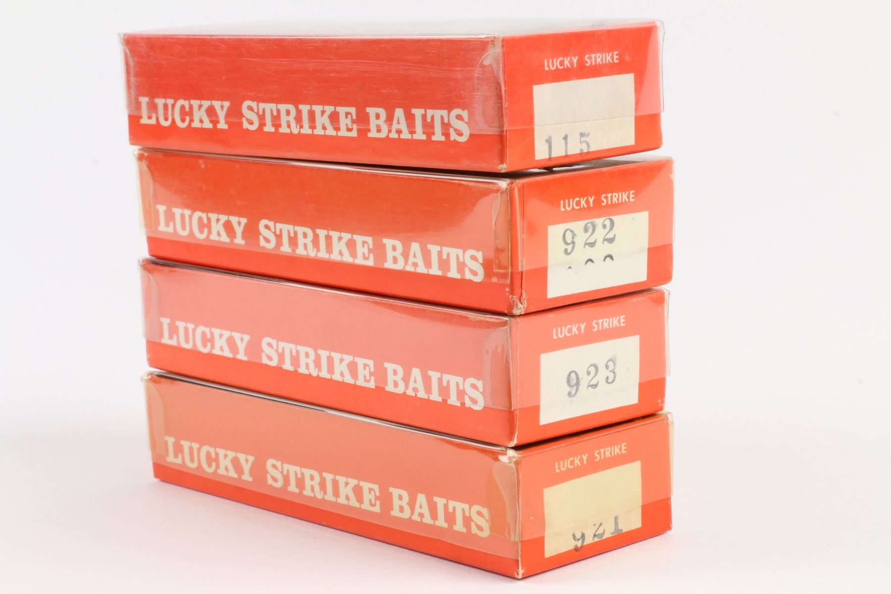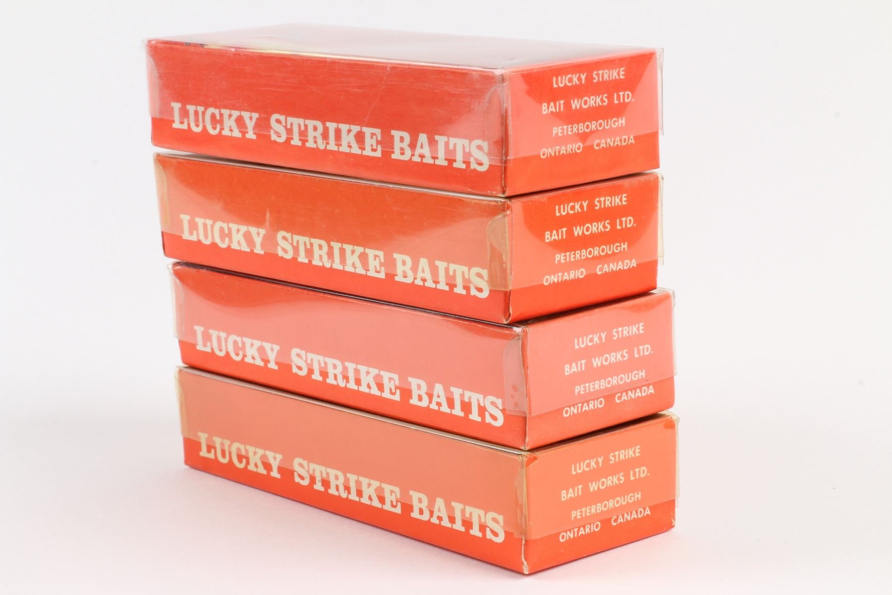 Lucky Strike Bait Works, Canada. 1970s. Material: Wood. Quantity: 11. Grade: VG+. 5" boxes. Est. $100-125.