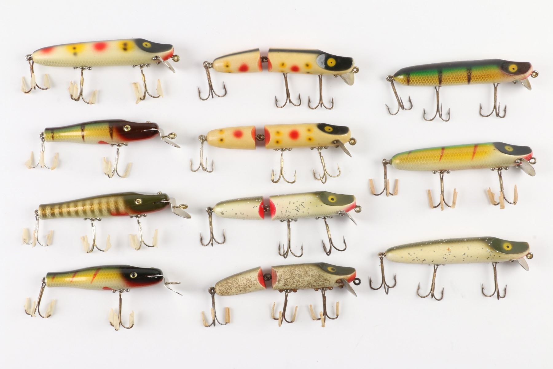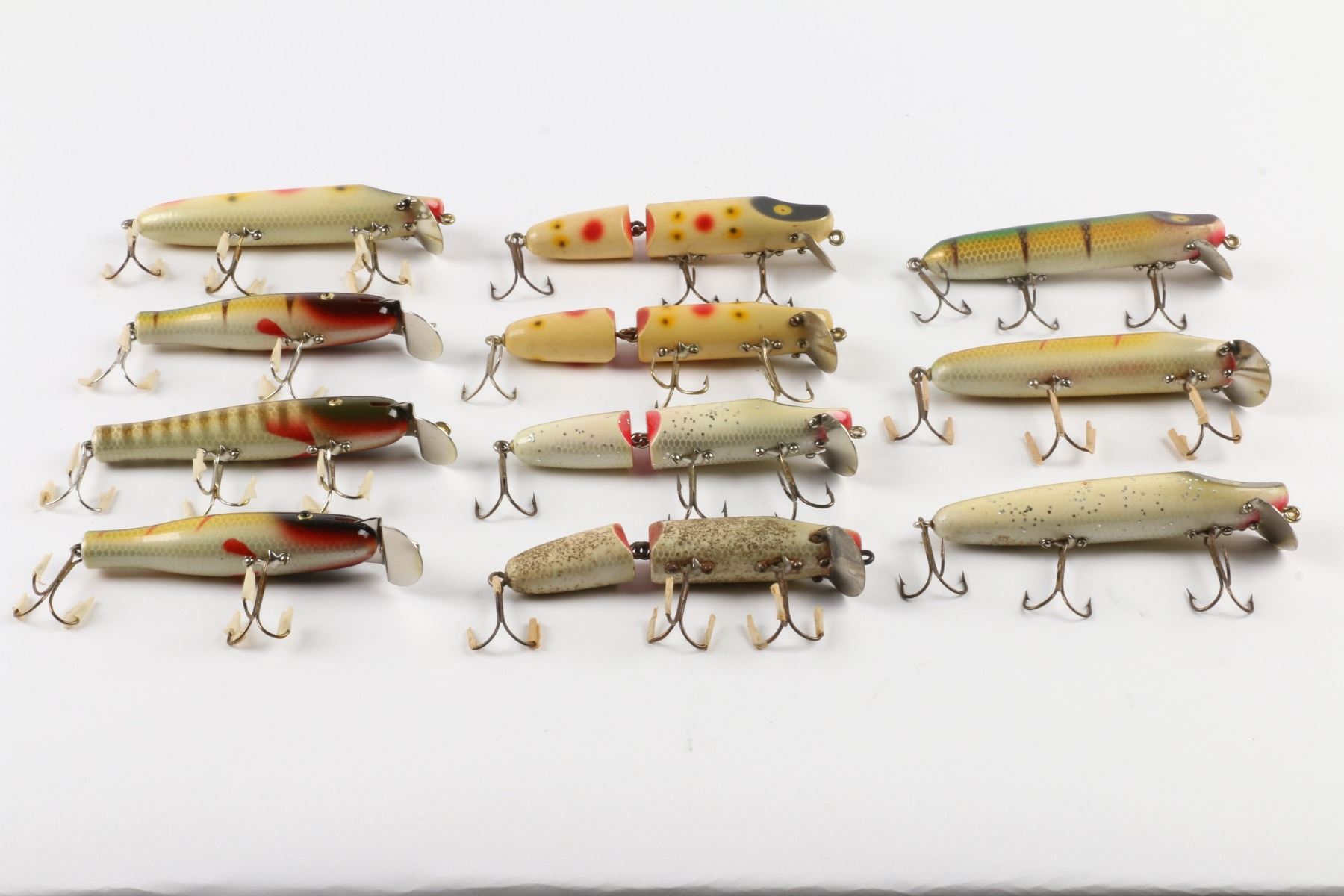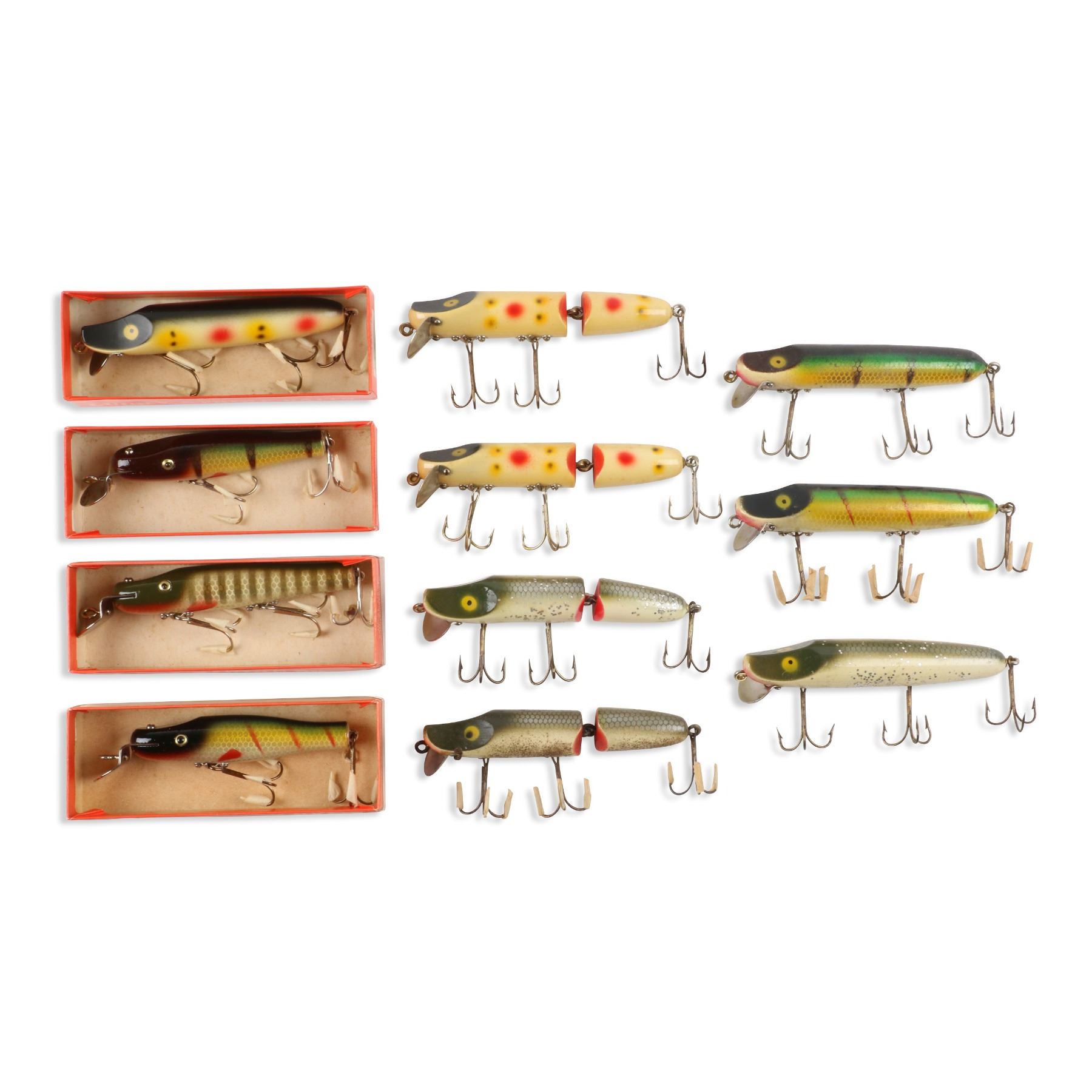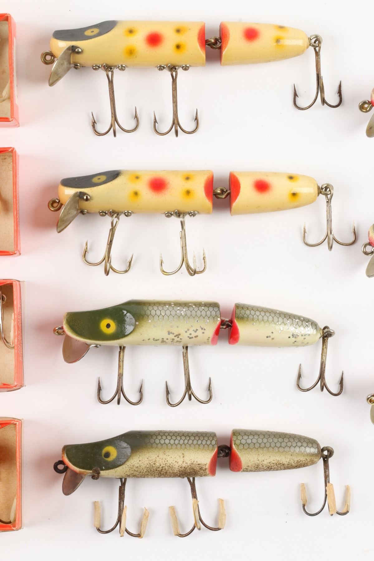 Lucky Strike Bait Works, Canada. 1970s. Material: Wood. Quantity: 11. Grade: VG+. 5" boxes. Est. $100-125.