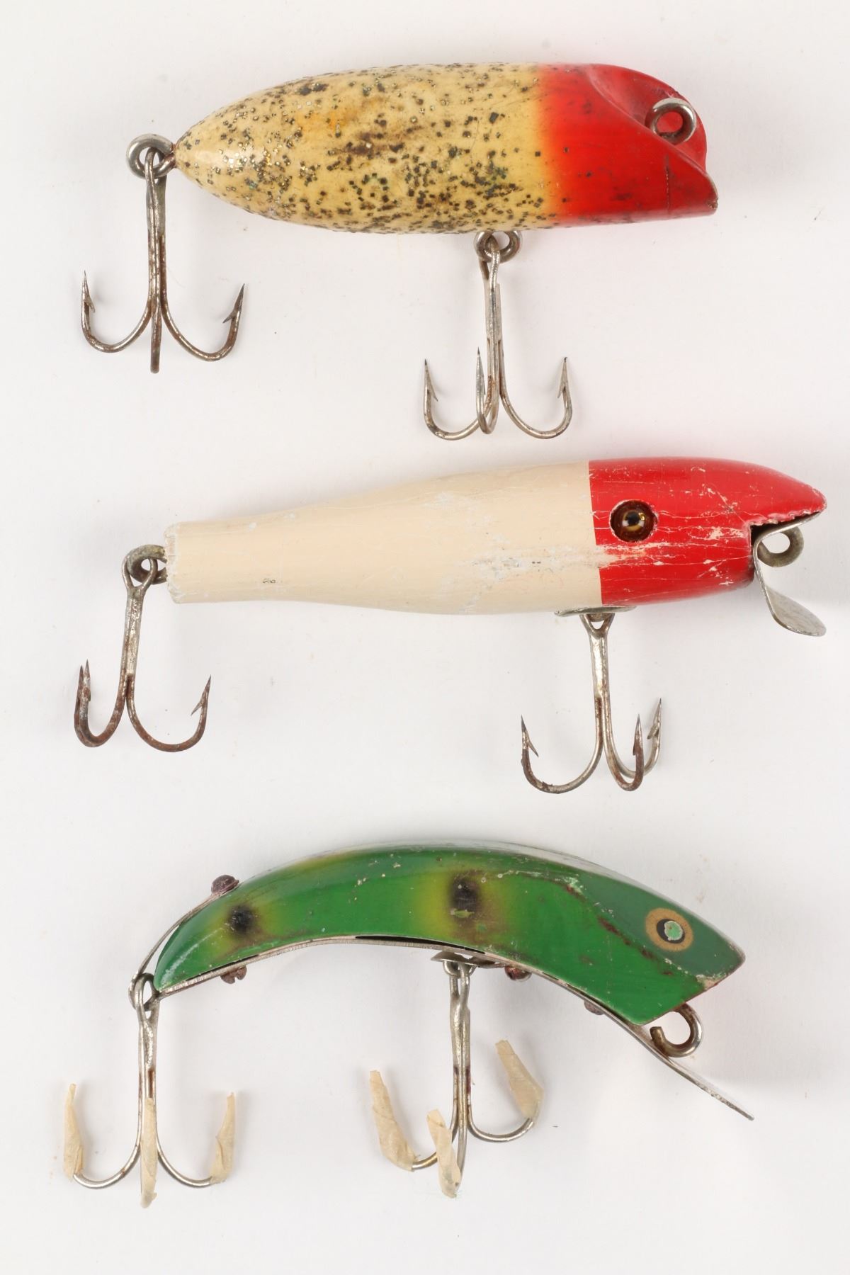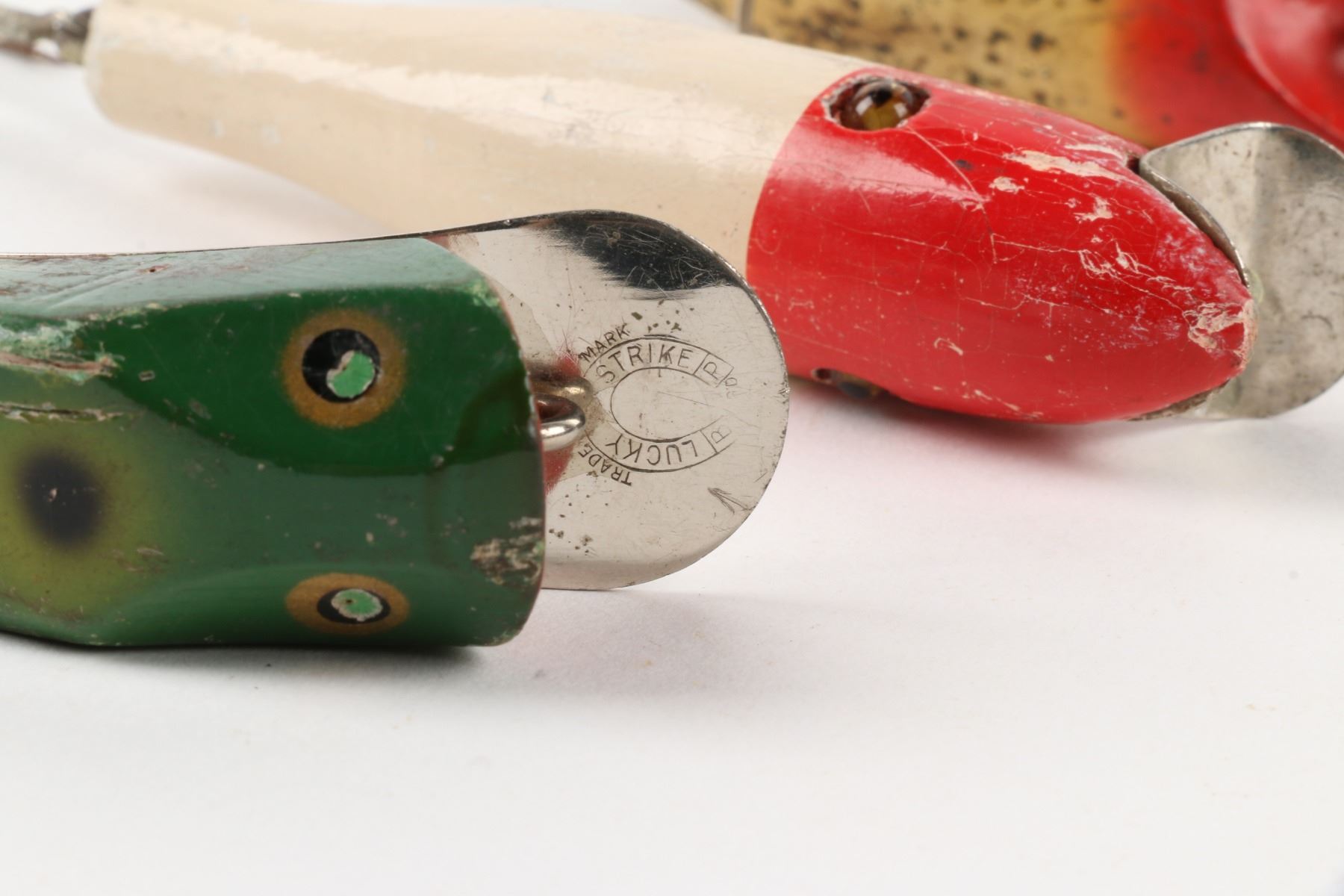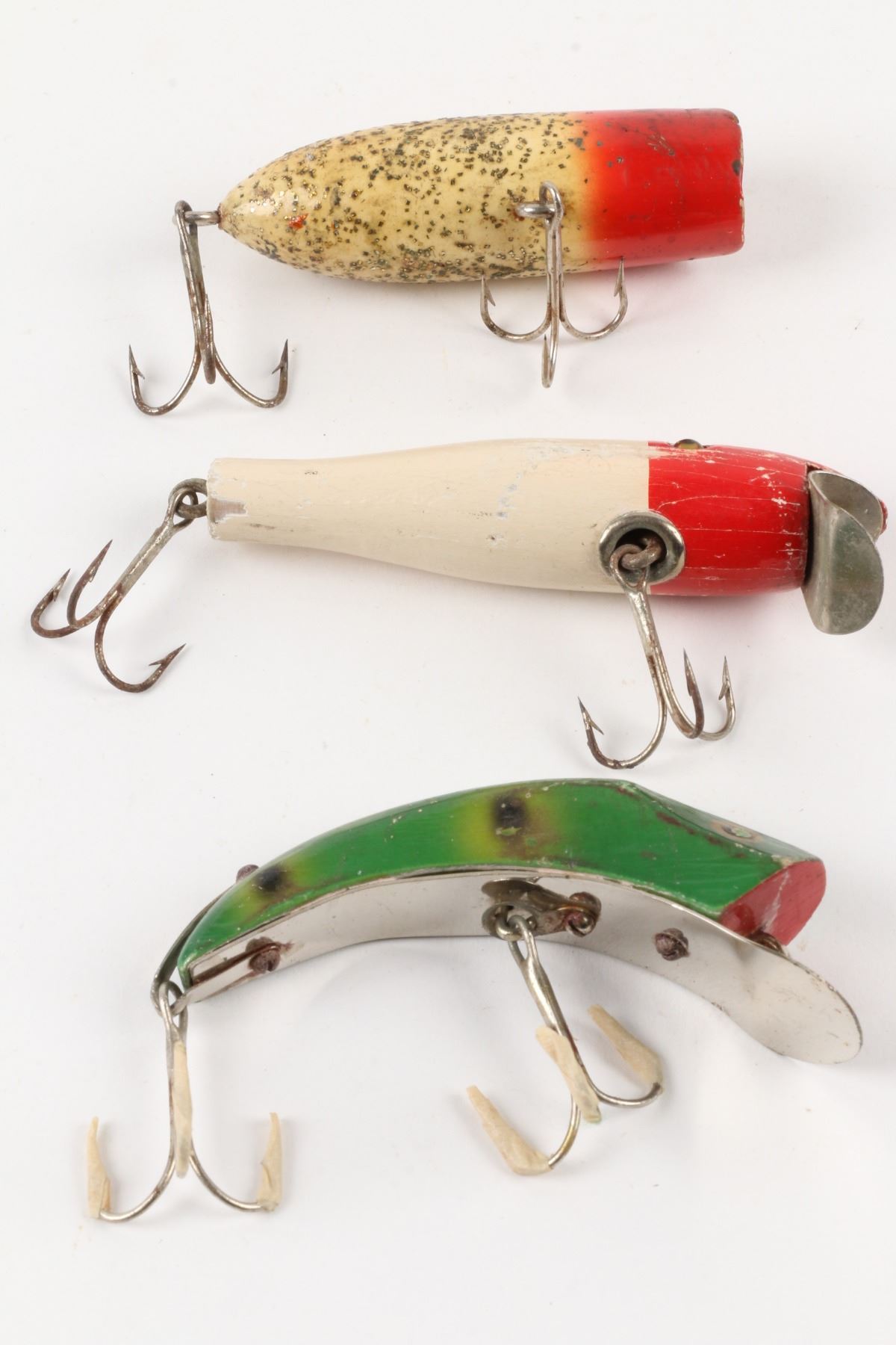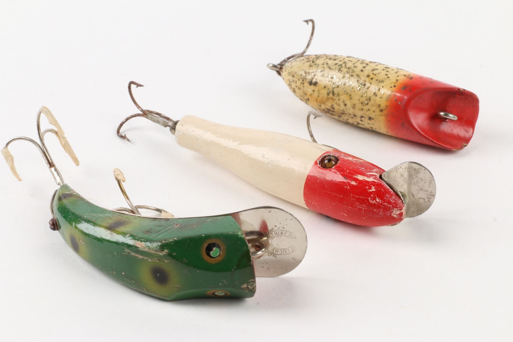 Lucky Strike Bait Works, Canada. Material: Wood. Quantity: 3. Grade: G. 3" - 3.5" Est. $100-125.