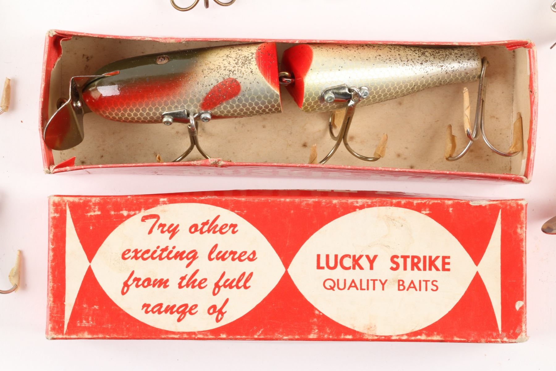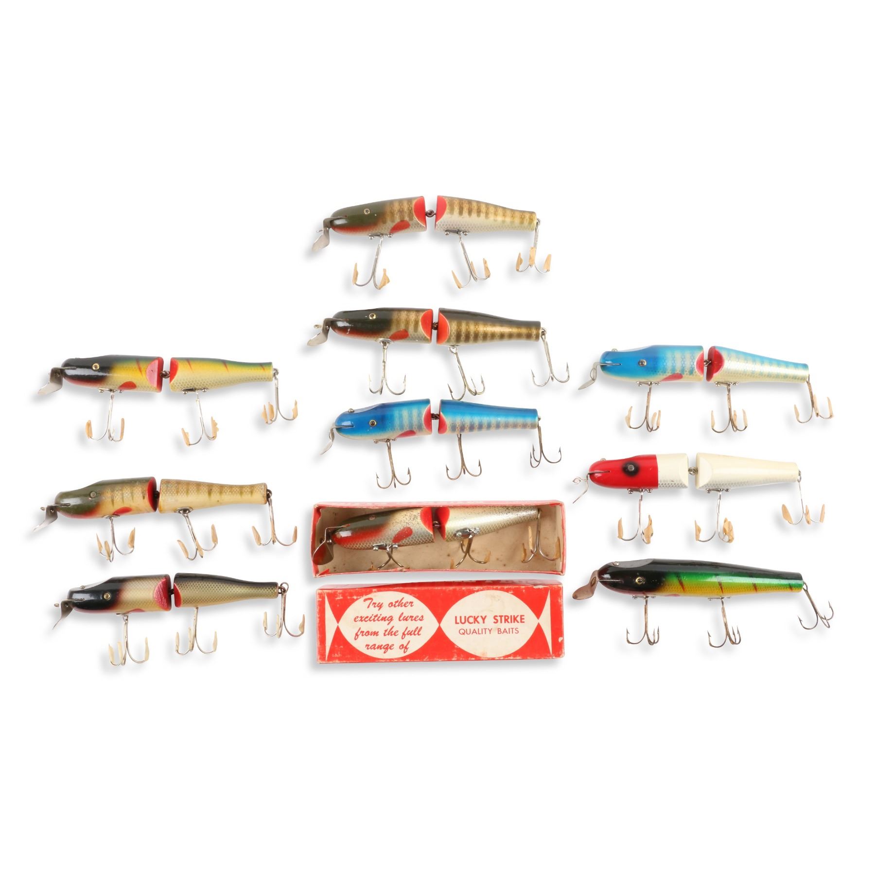 Lucky Strike Bait Works, Canada. Material: wood. Quantity: 10. Grade: VG+. 6" Each Est. $100-125.