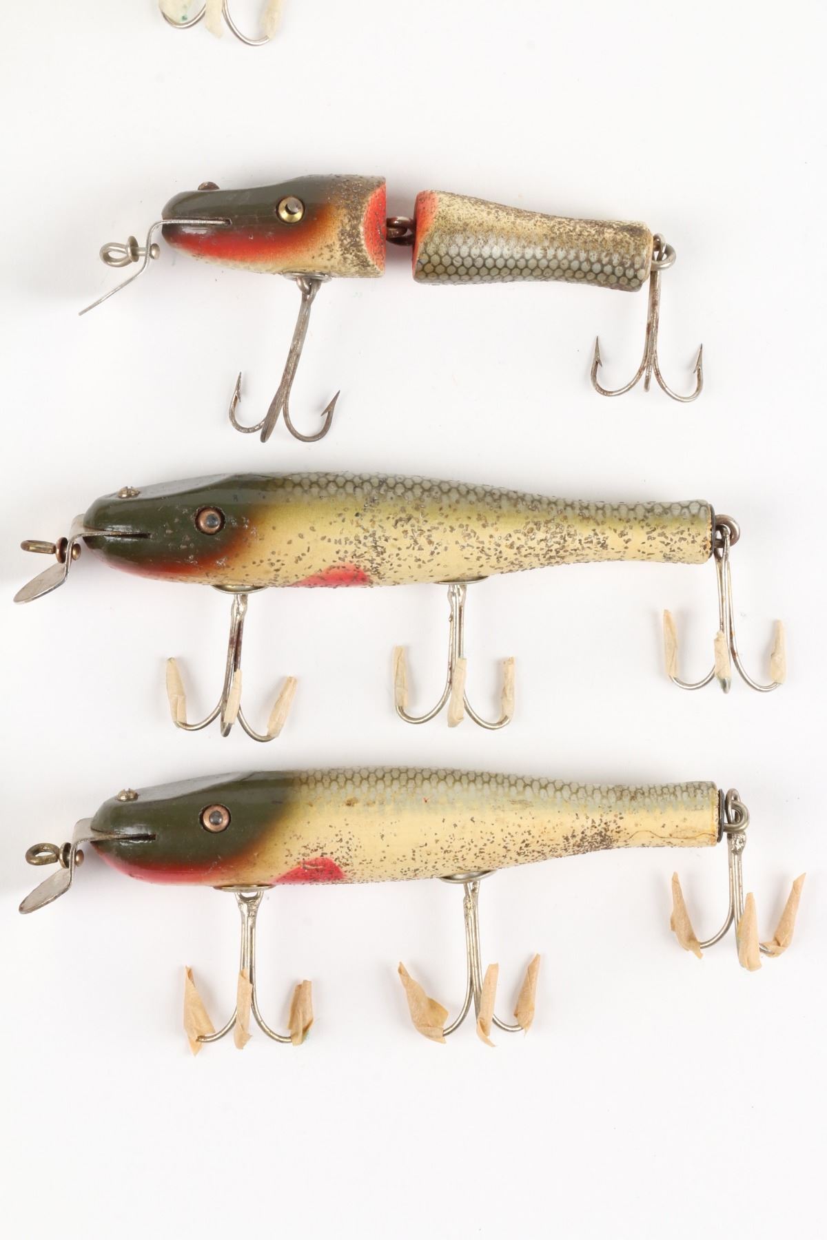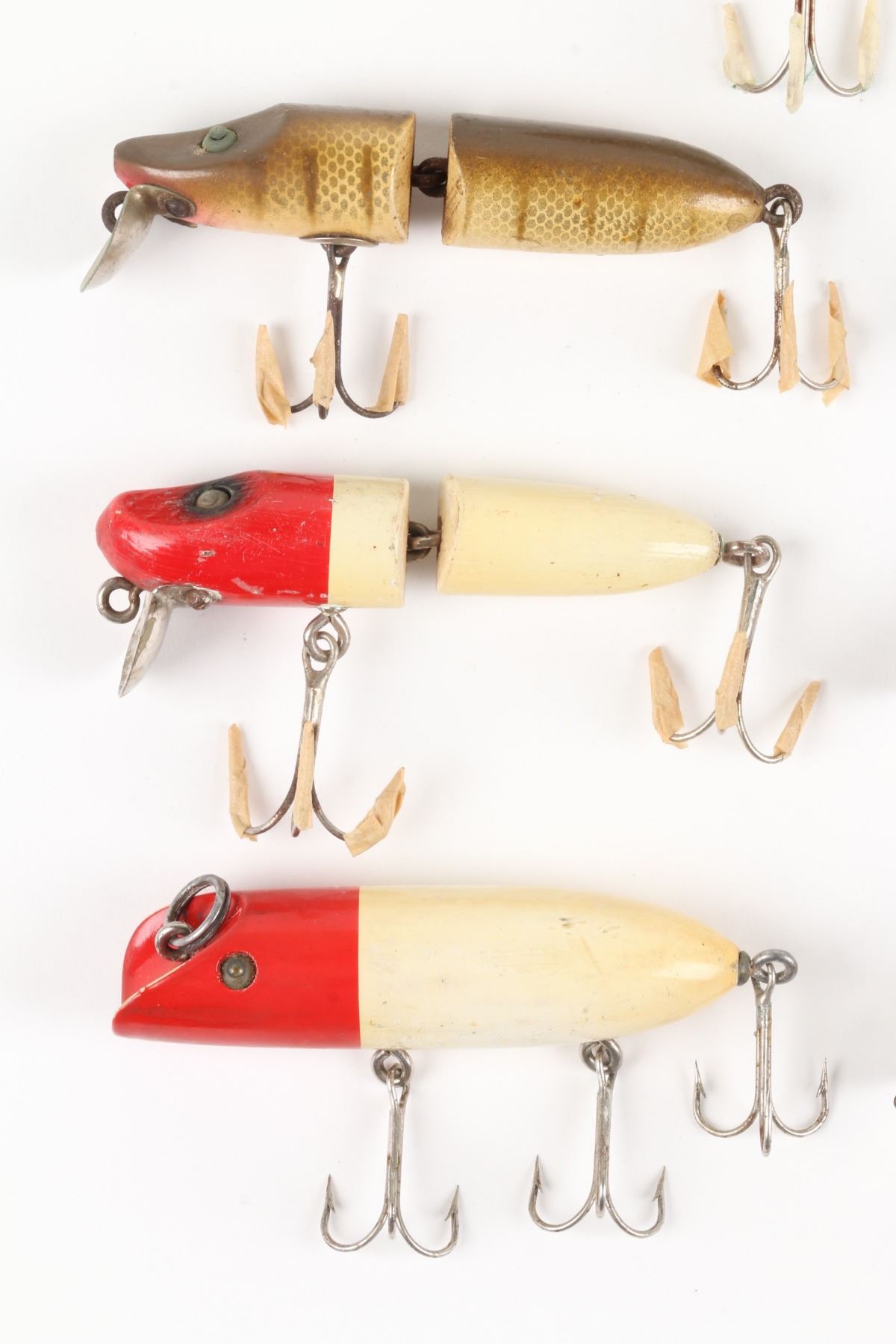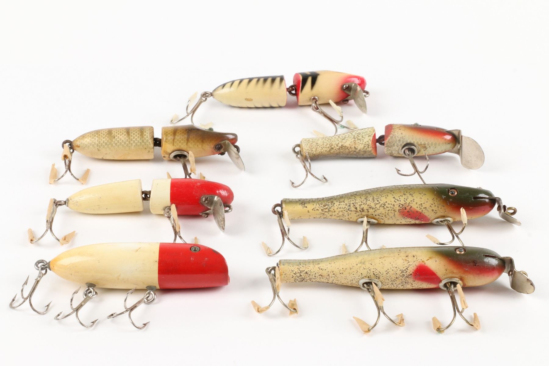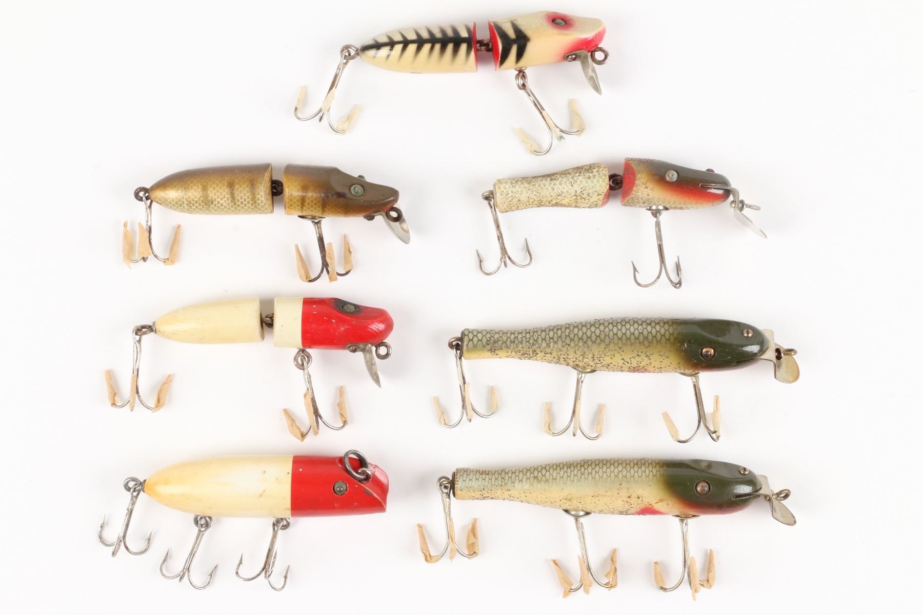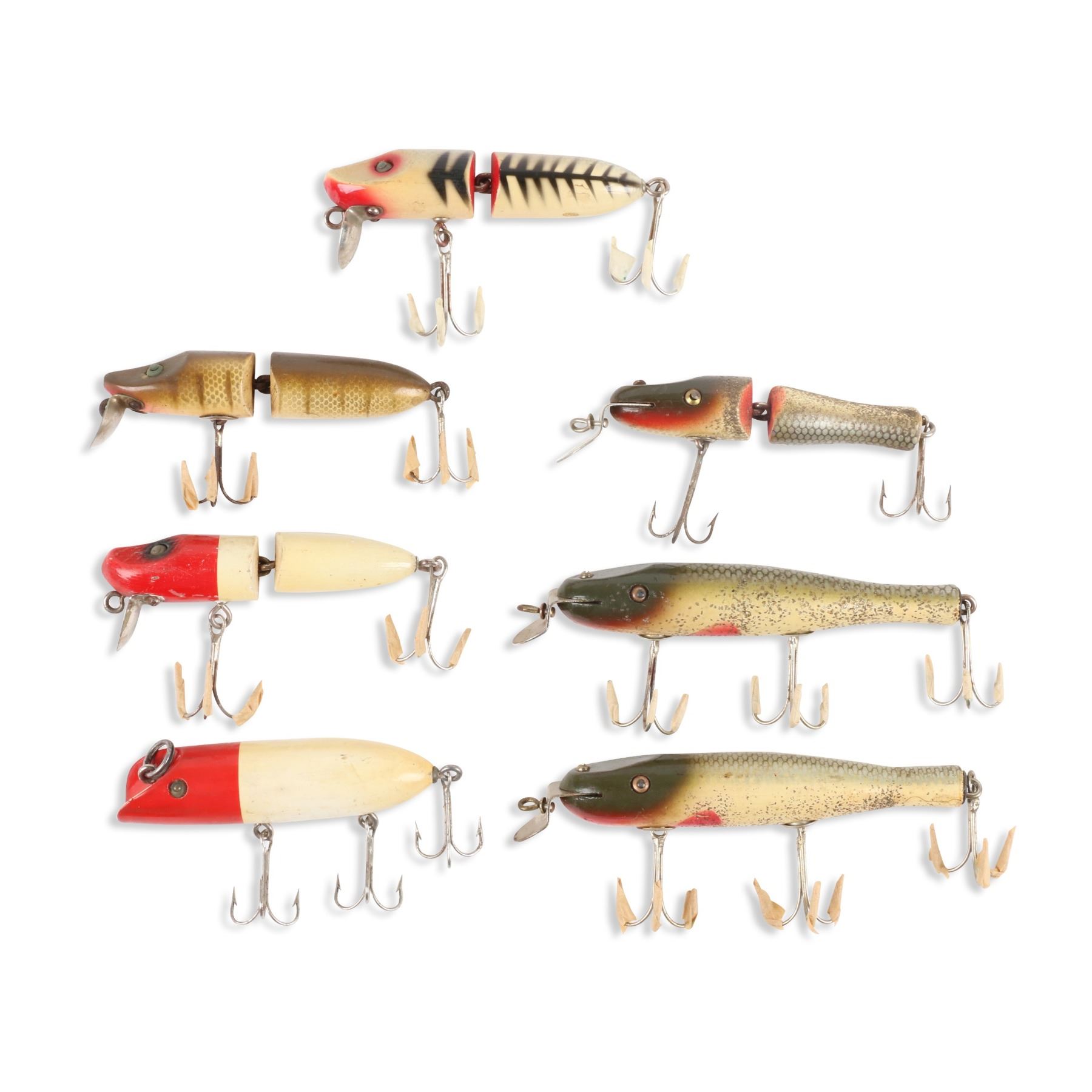 Lucky Strike Bait Works, Canada. 1950s. Material: Wood. Quantity: 7. Grade: VG. 3.5" - 4.5" Est. $100-125.