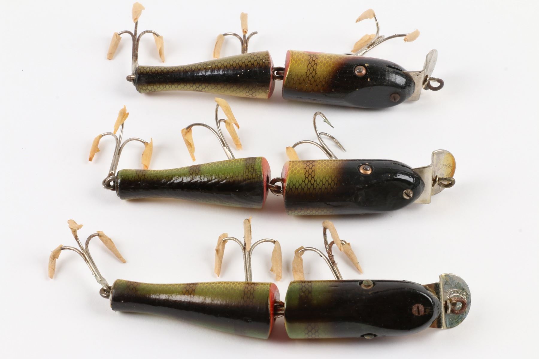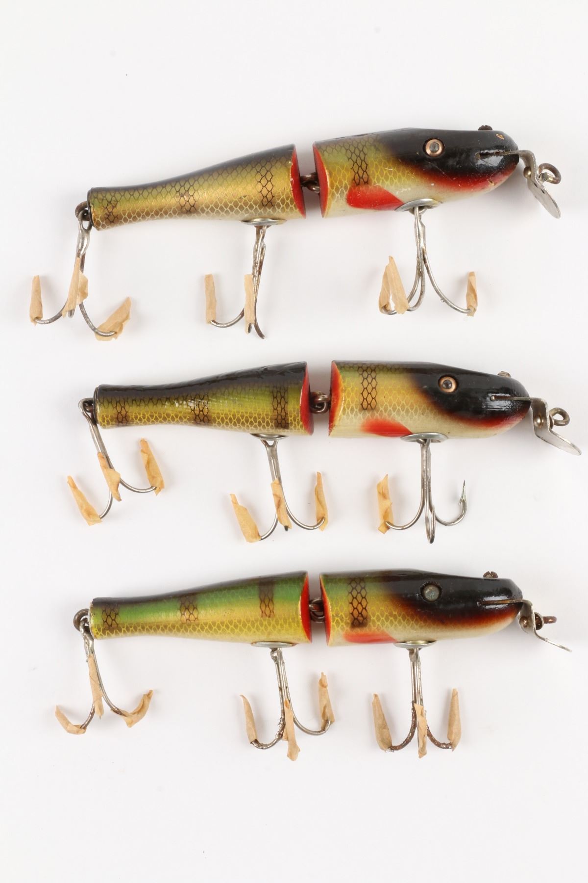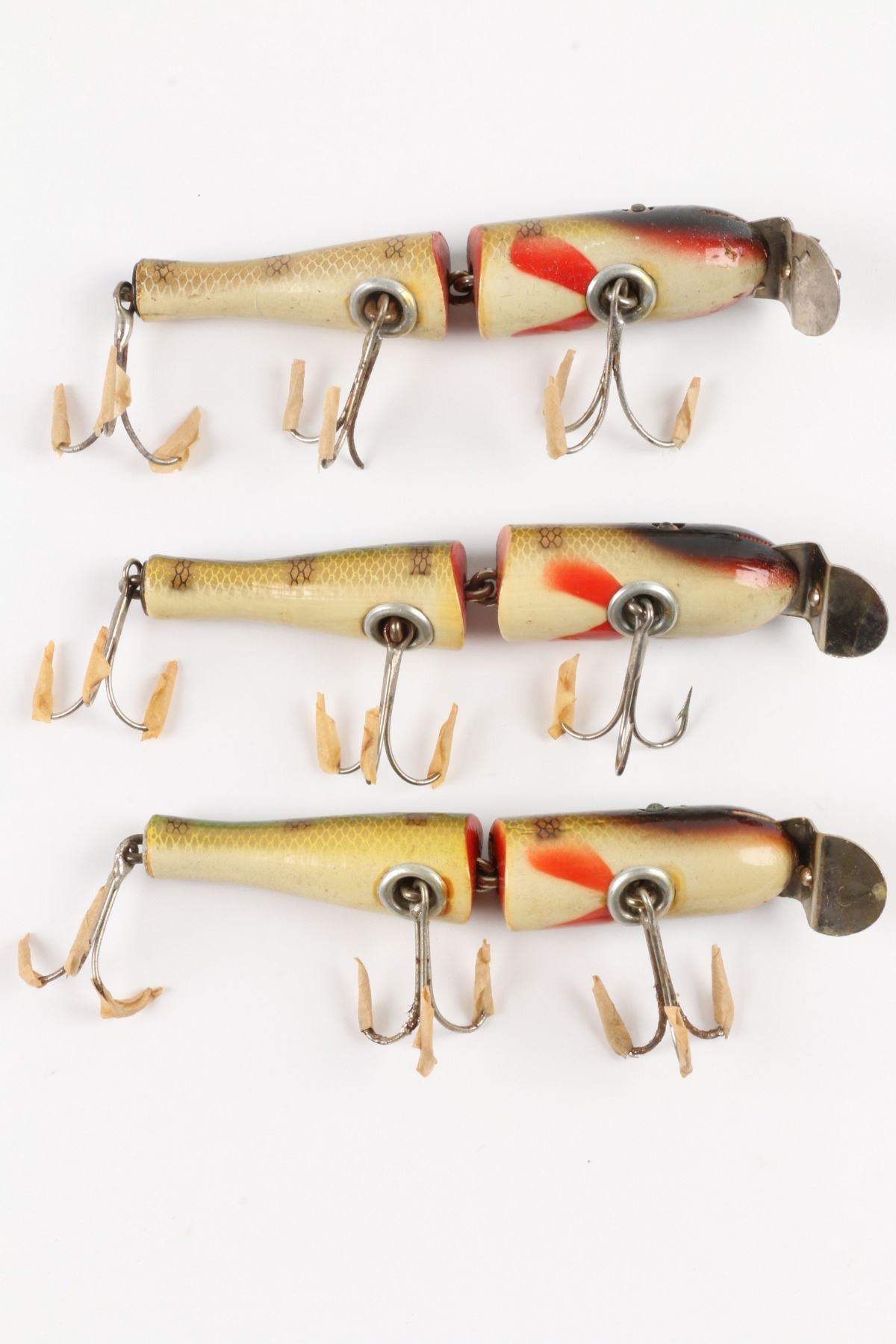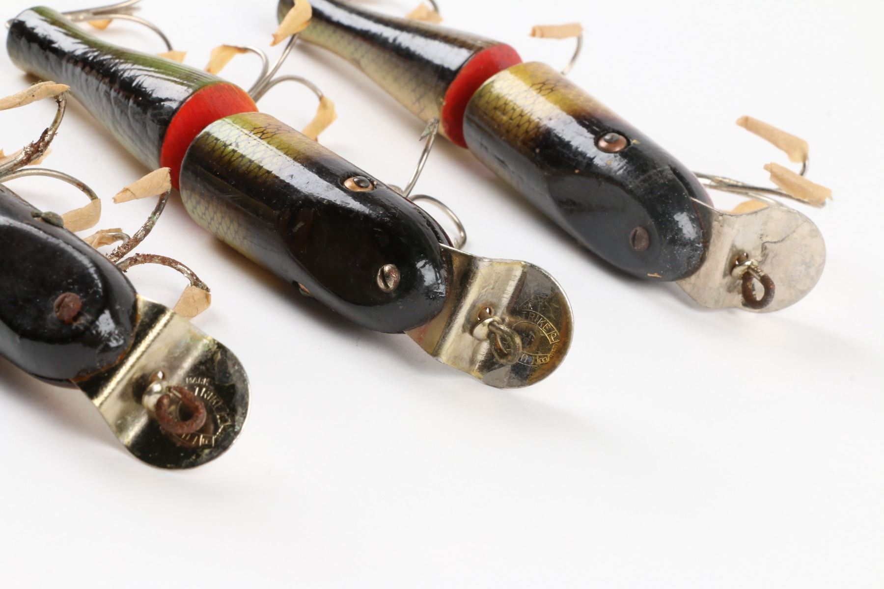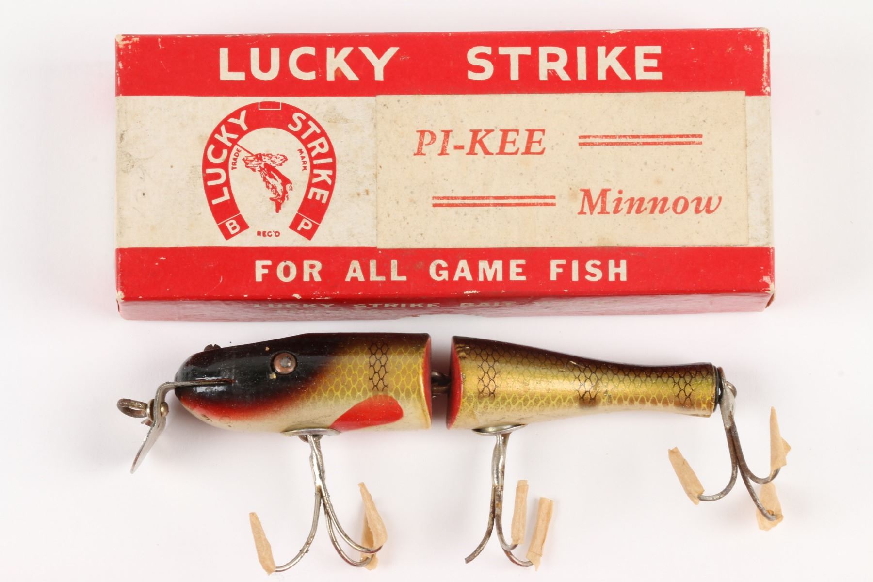 Lucky Strike Bait Works, Canada. 1950s. Material: Wood. Quantity: 3. Grade: VG. 5.25" boxes. Est. $75-100.