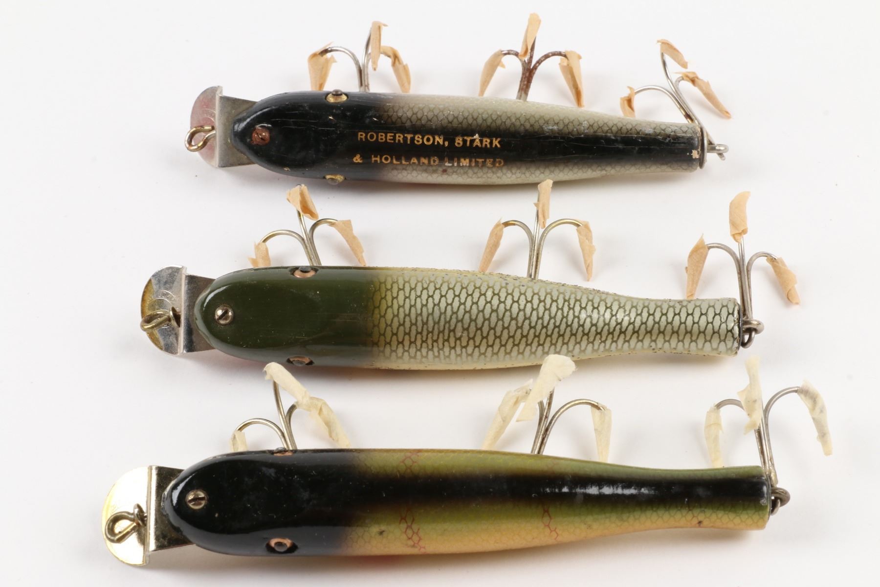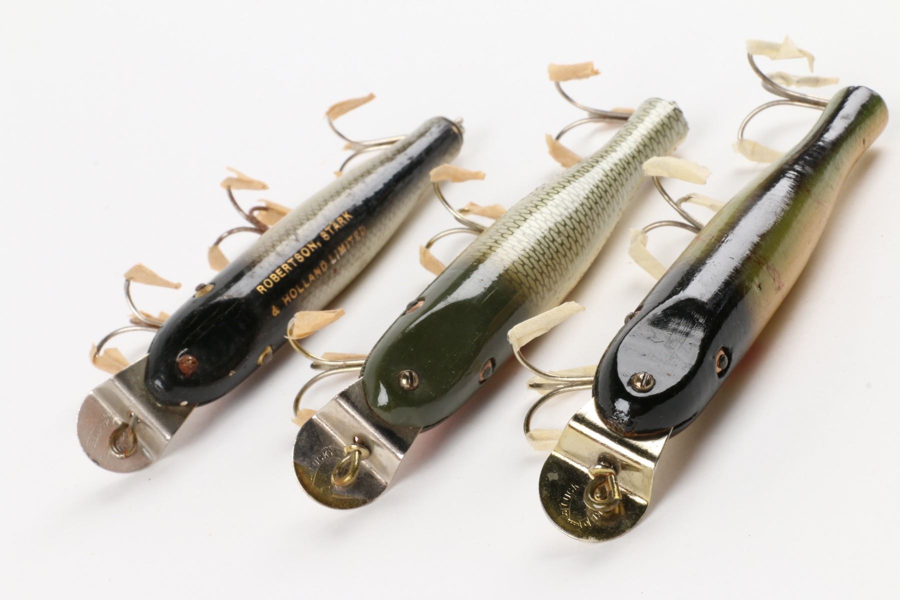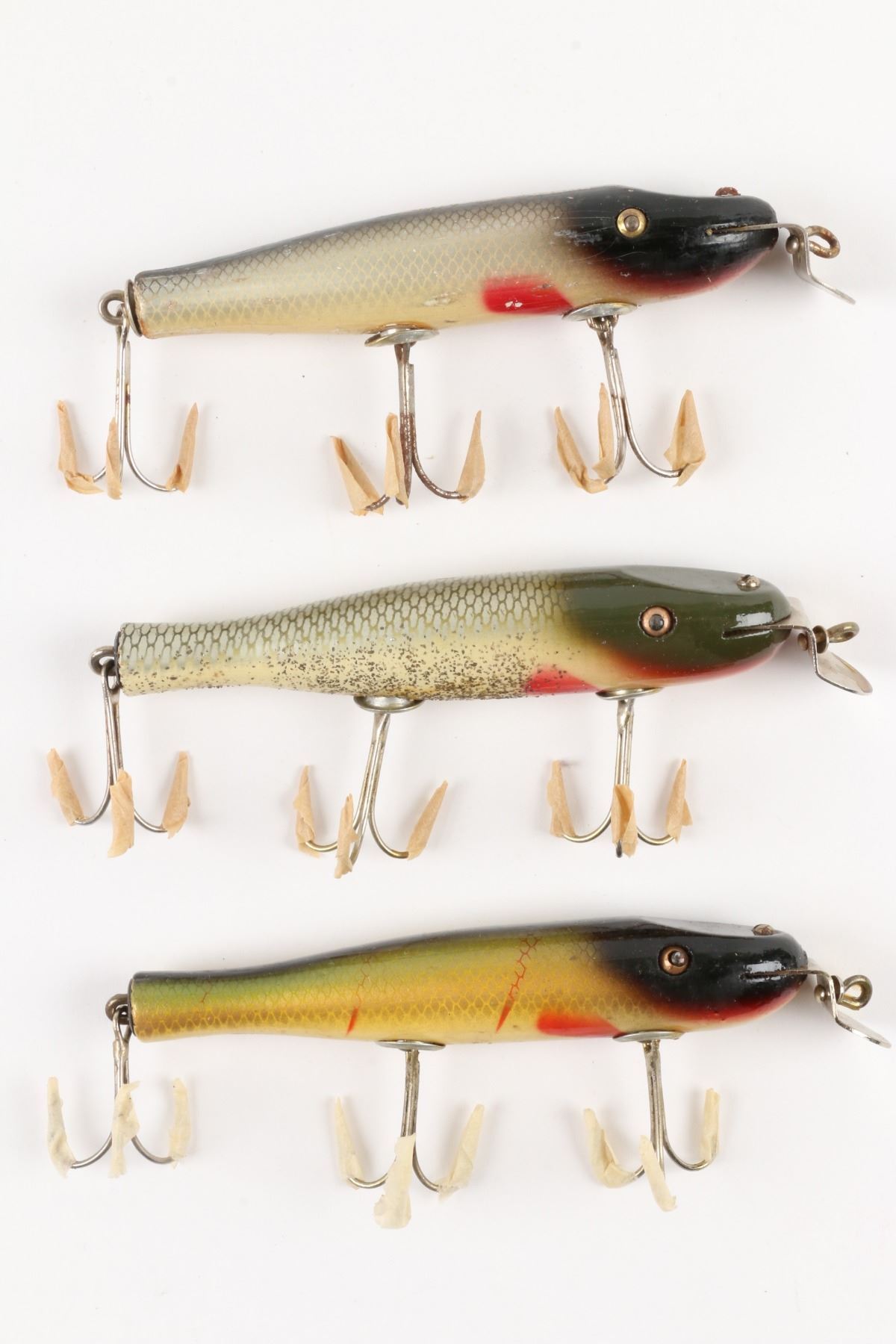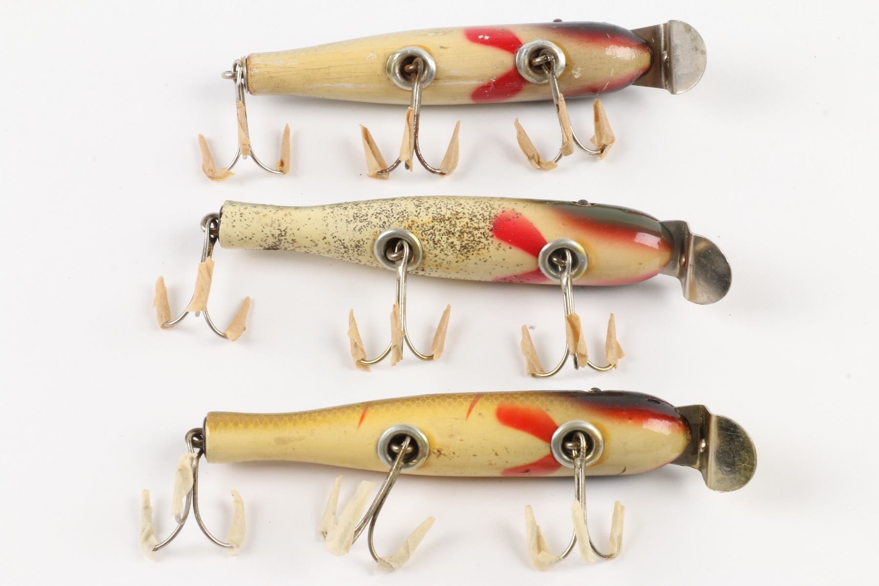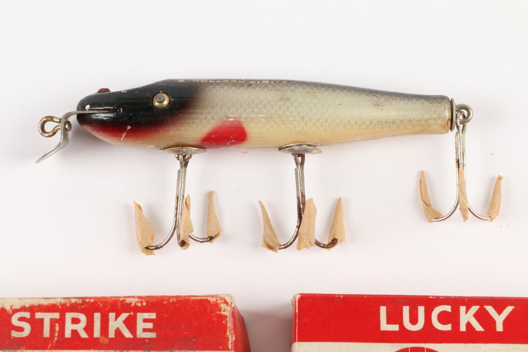 Lucky Strike Bait Works, Canada. 1950s. 2 Boxed. Material: Wood. Quantity: 3. Grade: VG+. 5.25" boxes. Est. $100-125.