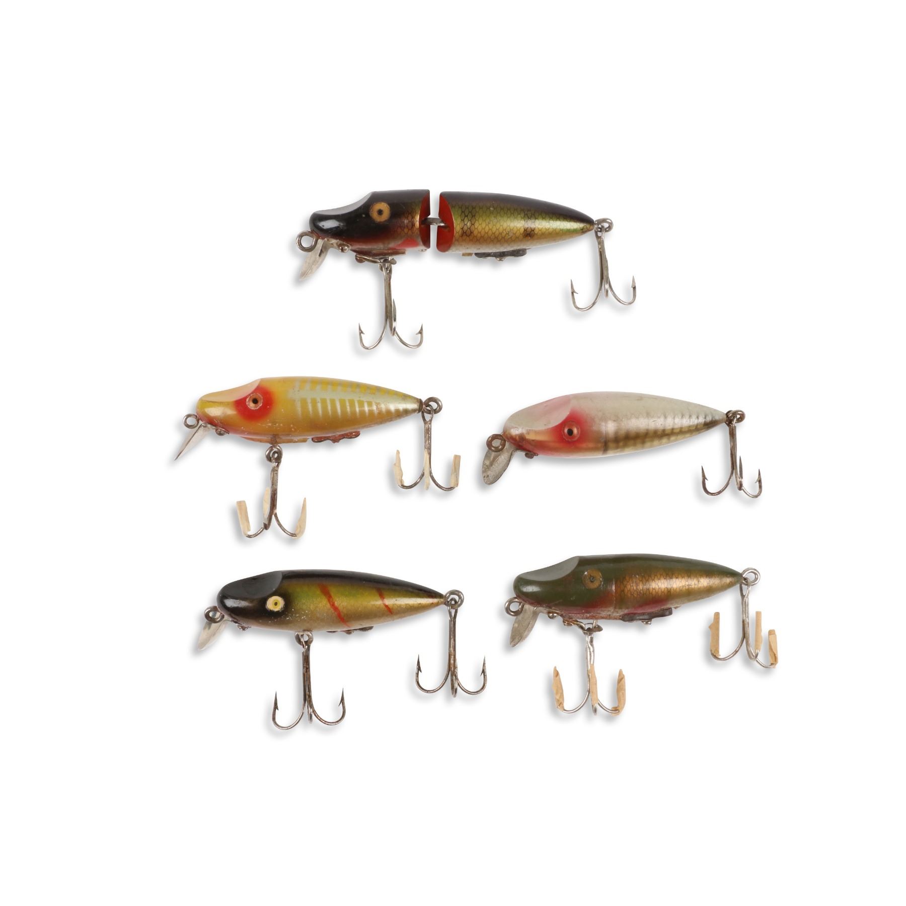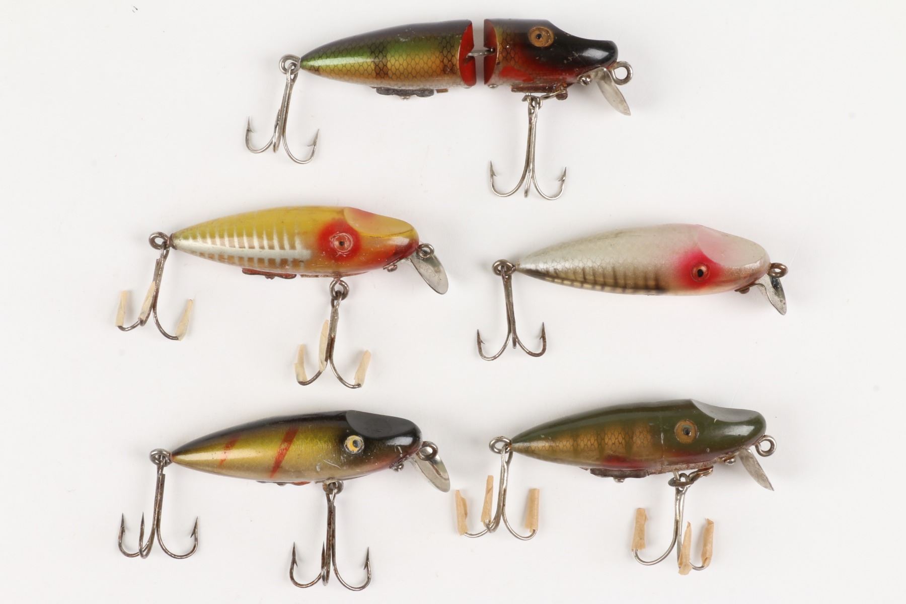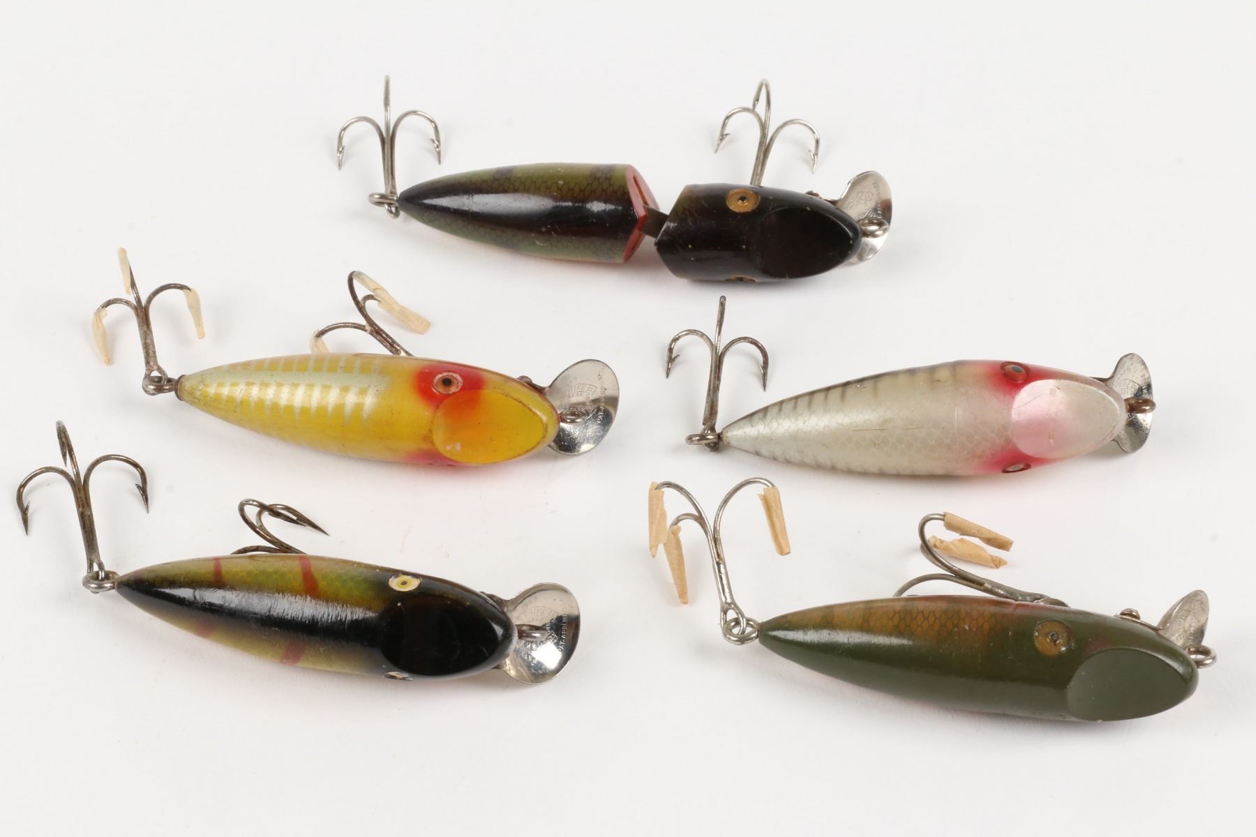 Lucky Strike Bait Works, Canada. 1940s. Material: Plastic. Quantity: 5. Grade: VG. 3" - 3.5". Est. $100-125.