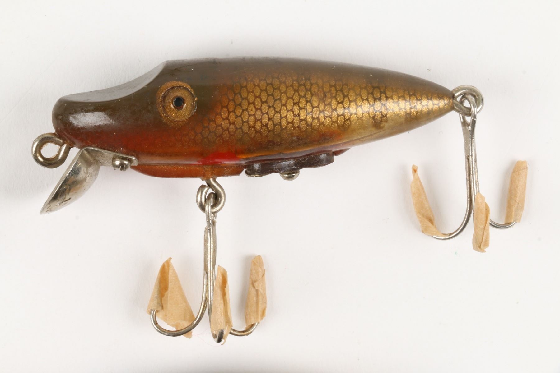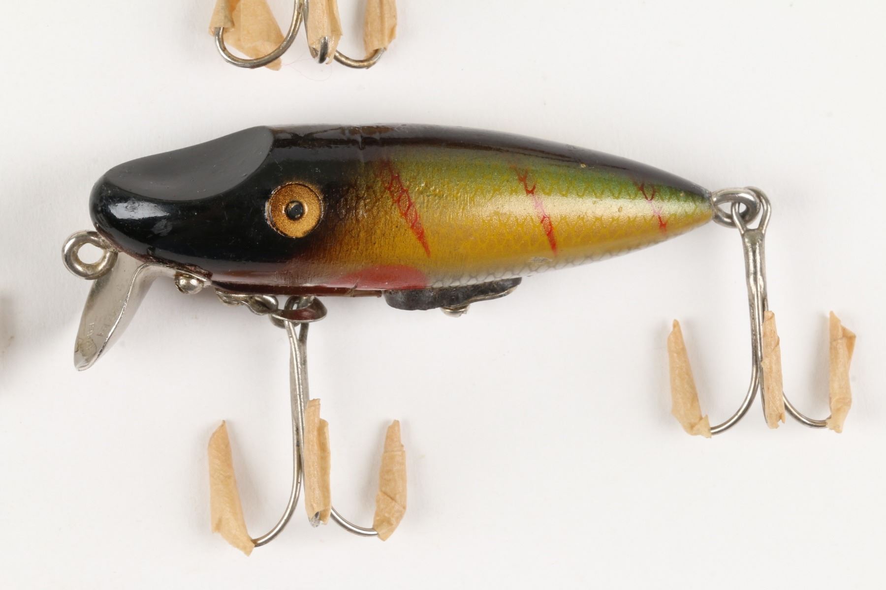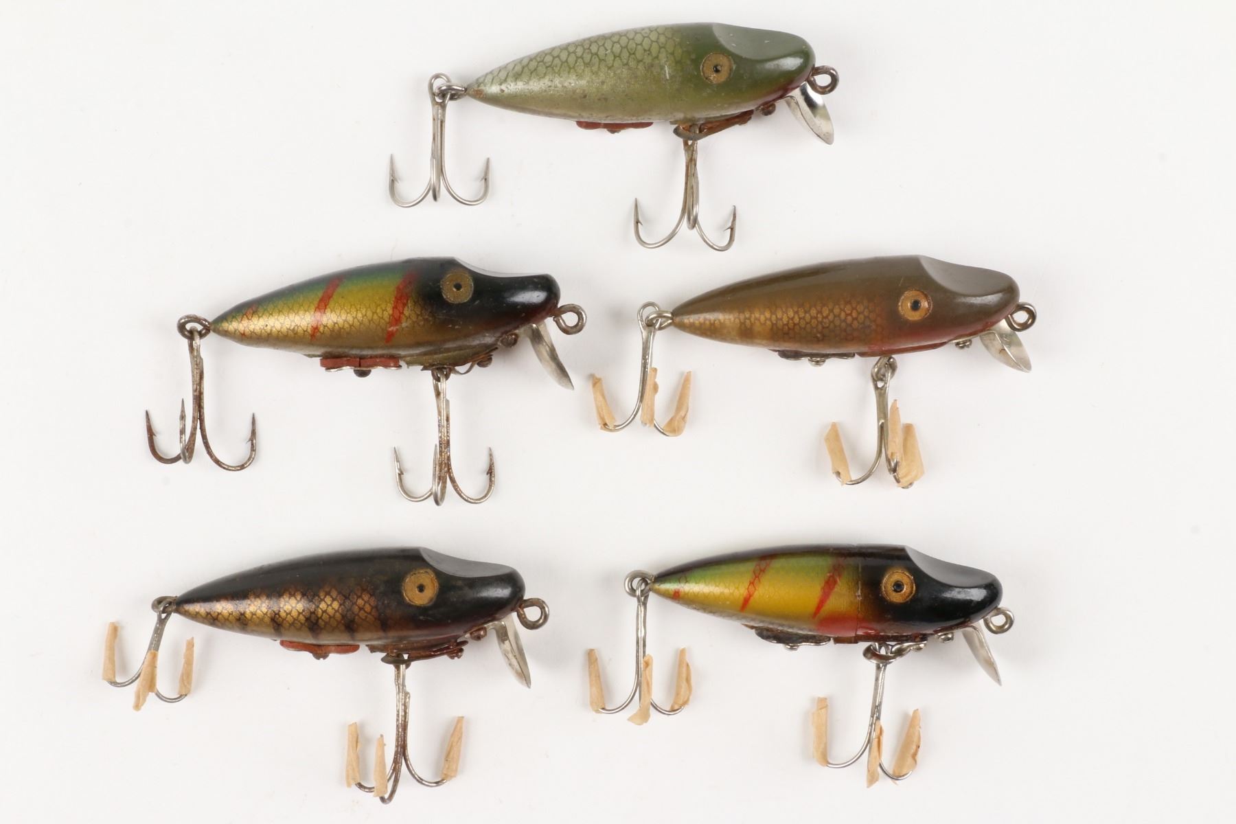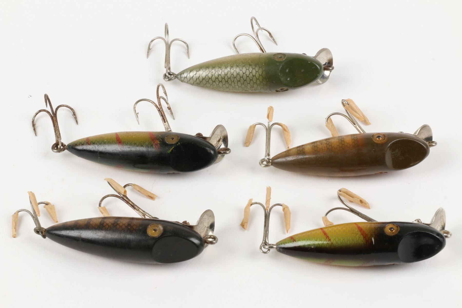 Lucky Strike Bait Works, Canada. 1940s. Material: Plastic. Quantity: 5. Grade: VG. 3" each. Est. $100-125.