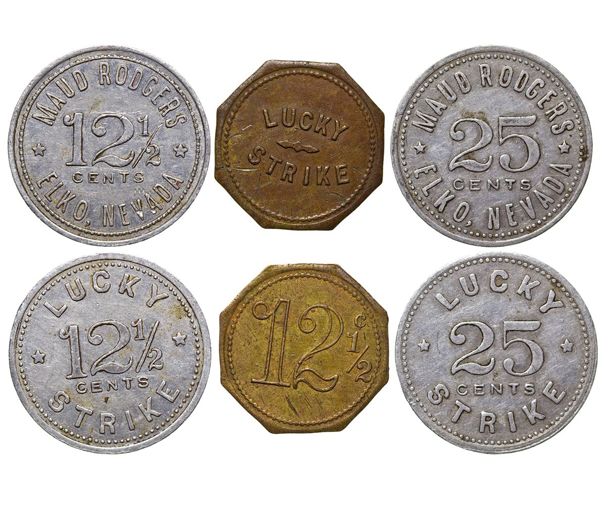 Lot of 3. Lucky Strike. 2 aluminum, 1 brass. 2 12 1/2 cents and 1 25 cents. Little wear. - HKA#65801