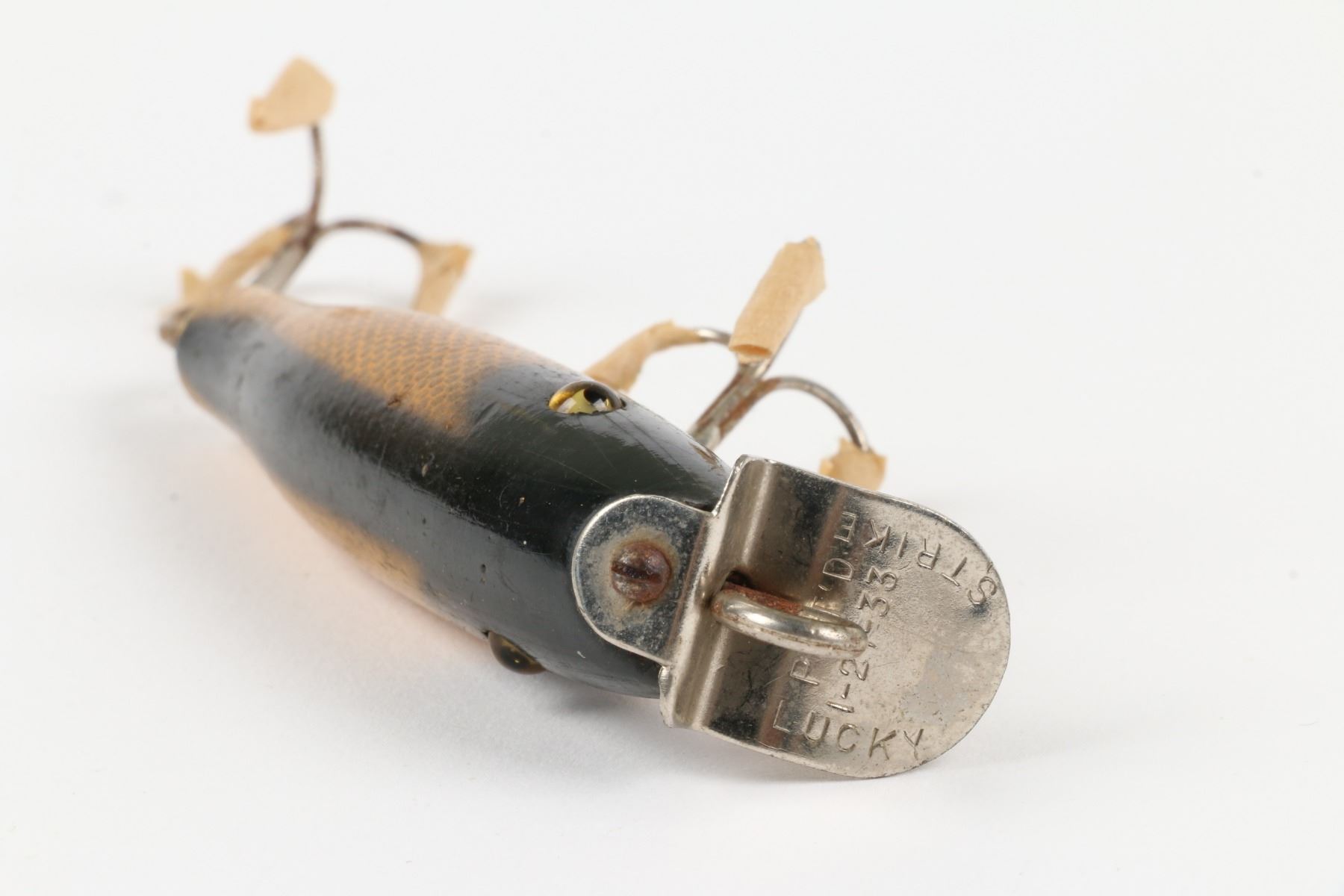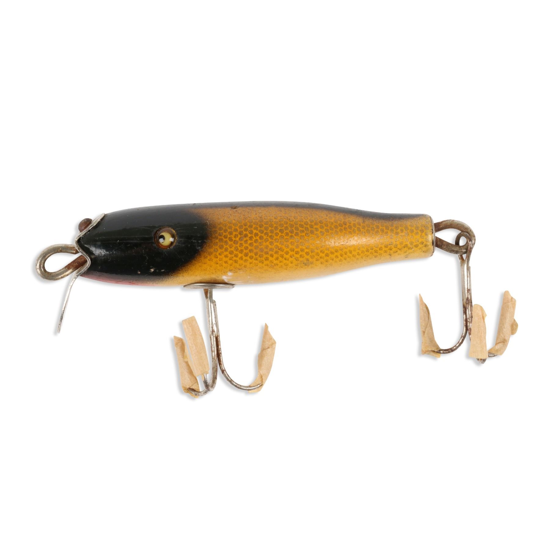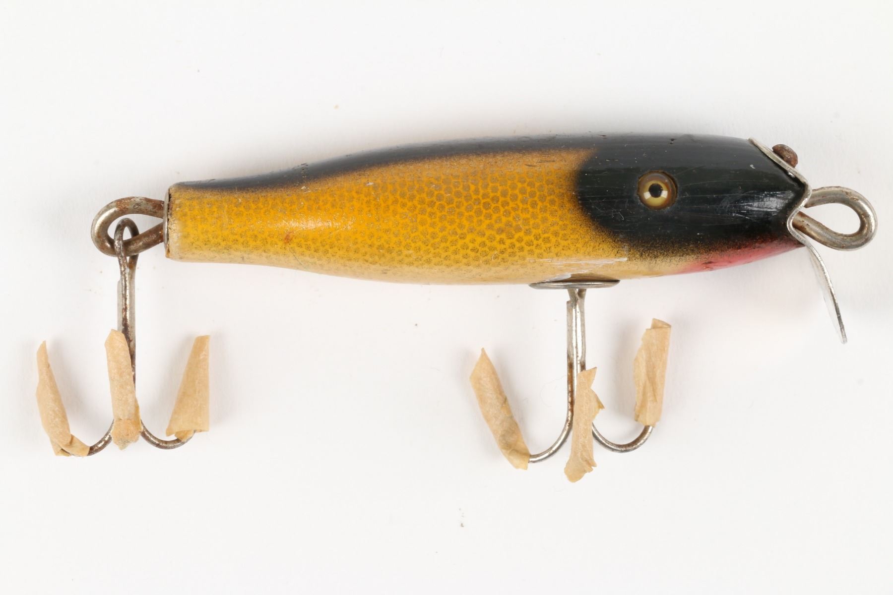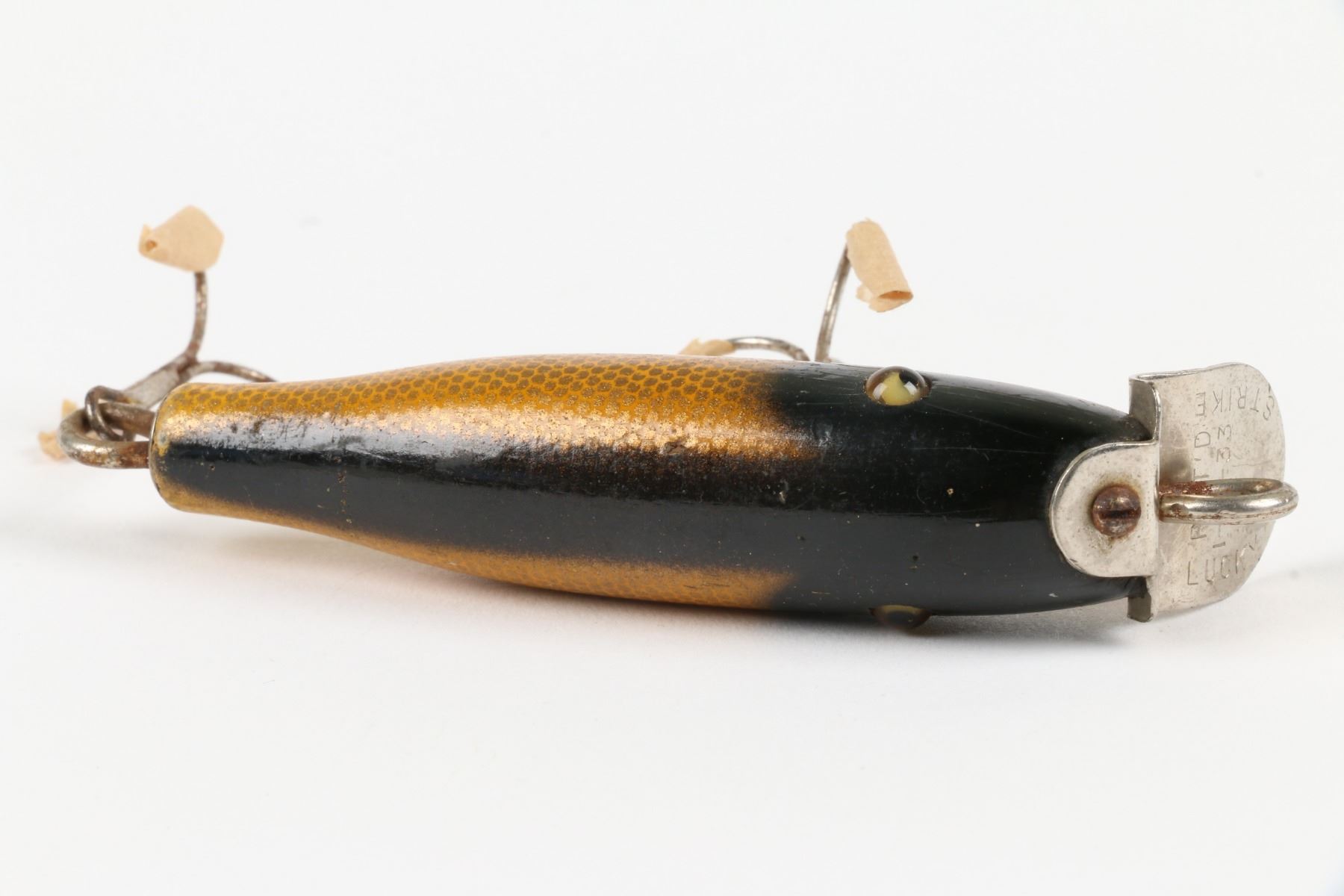 Lucky Strike Bait Works, Canada. 1930s. Black Head Golden Shiner. Material: Wood. Quantity: 1. Grade: VG. 3" Est. $150-200.