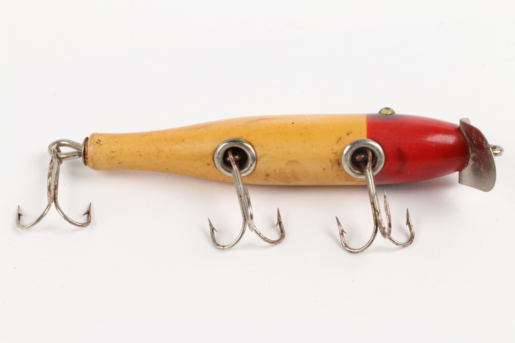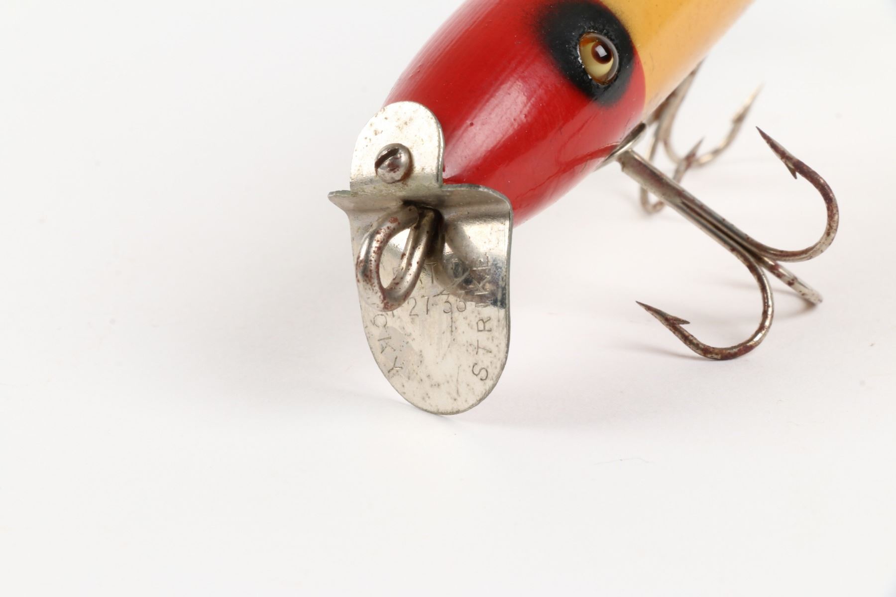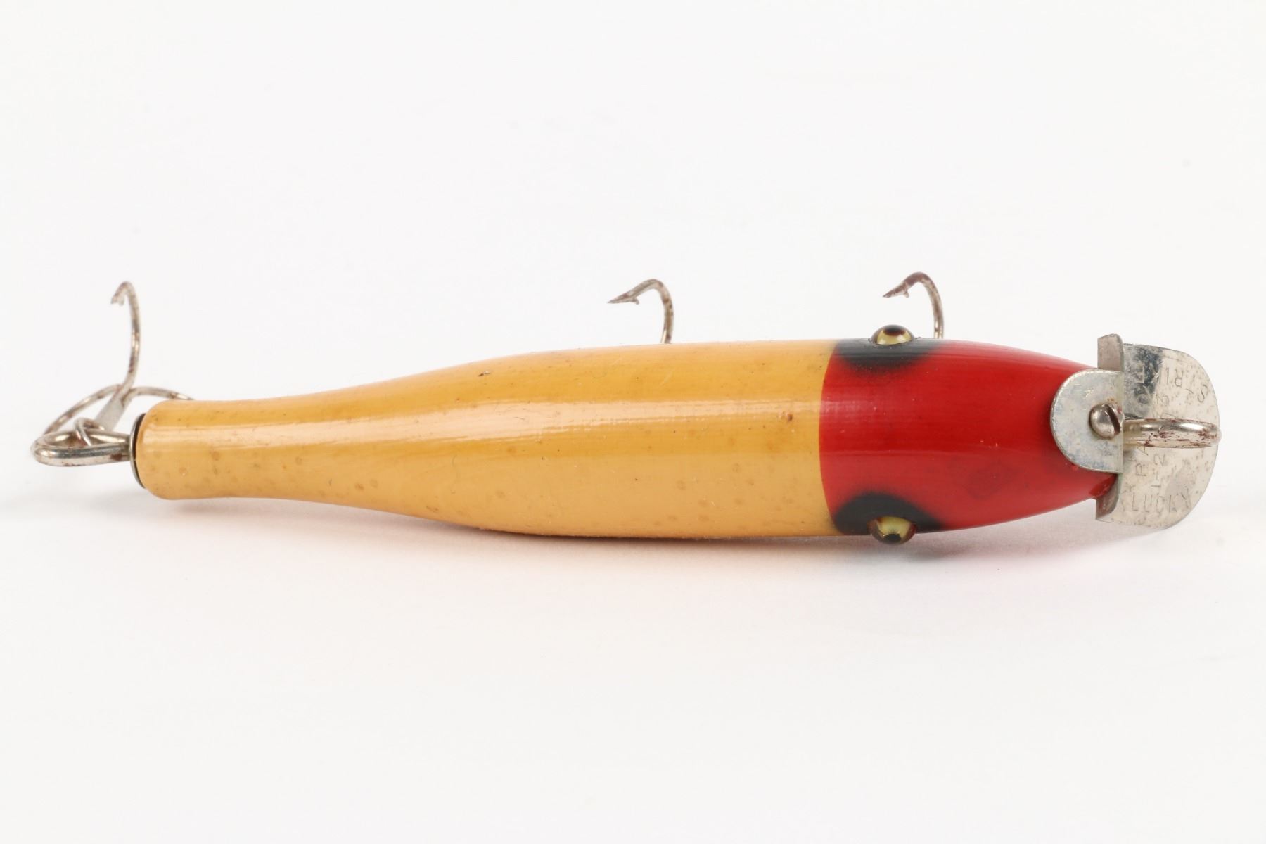 Lucky Strike Bait Works, Canada. 1930s. Red and White. Material: Wood. Quantity: 1. Grade: VG. 4.5" Est. $100-125.