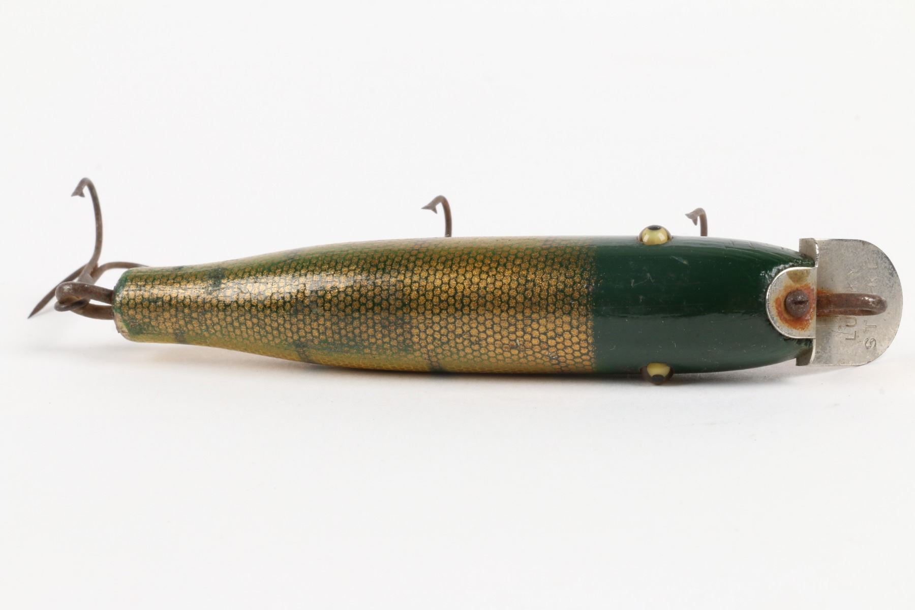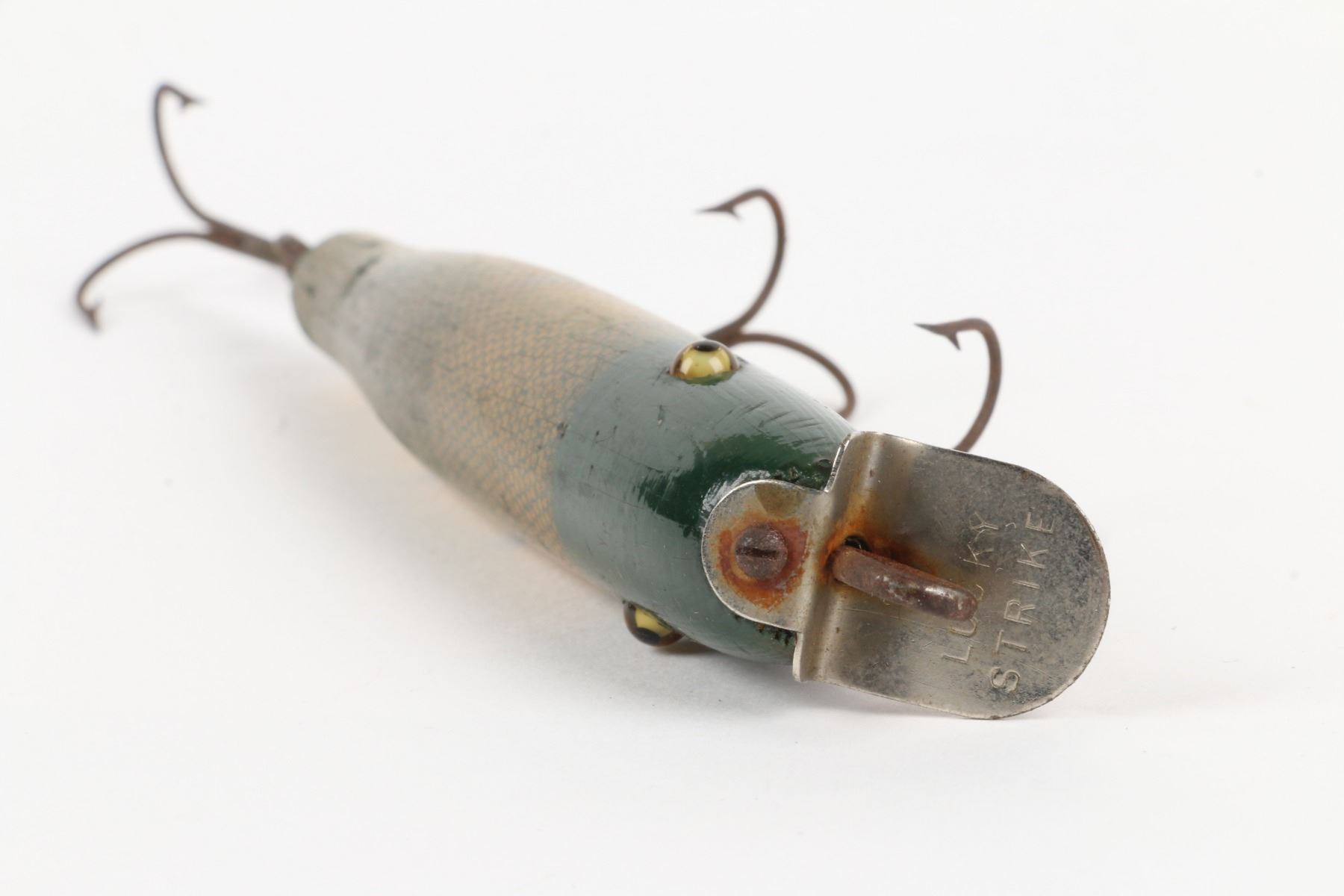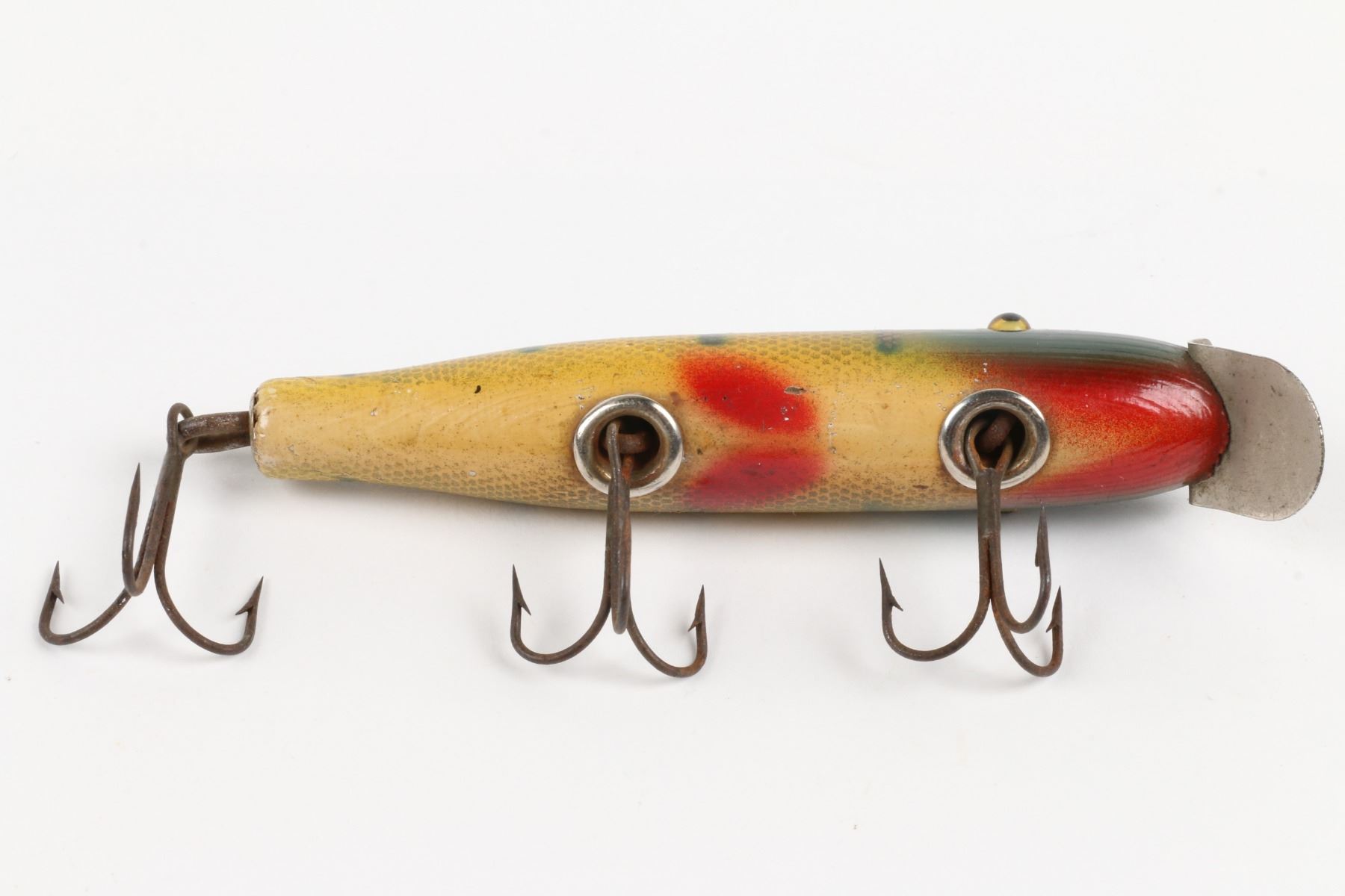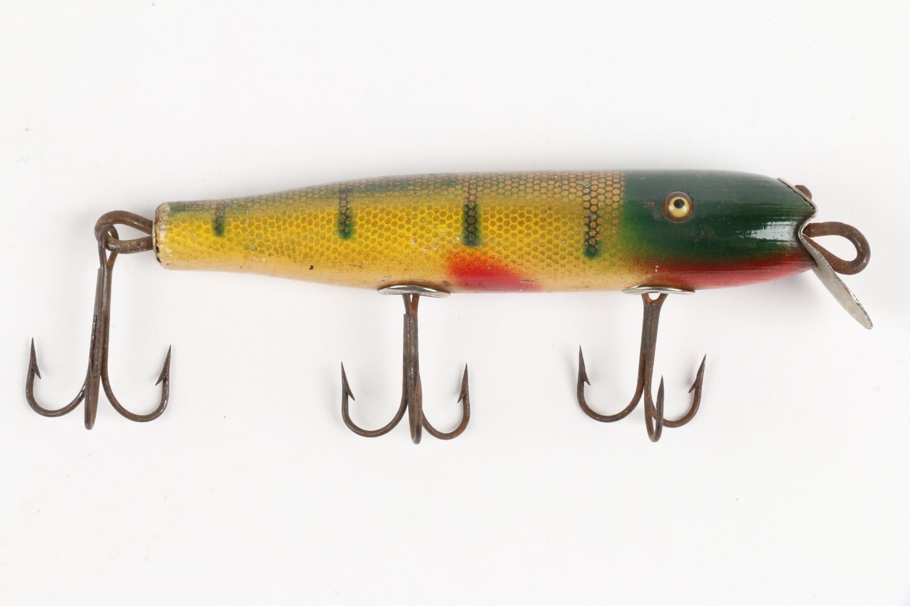 Lucky Strike Bait Works, Canada. 1930s. Perch. Material: Wood. Quantity: 1. Grade: VG+. 4.5" Est. $125-150.