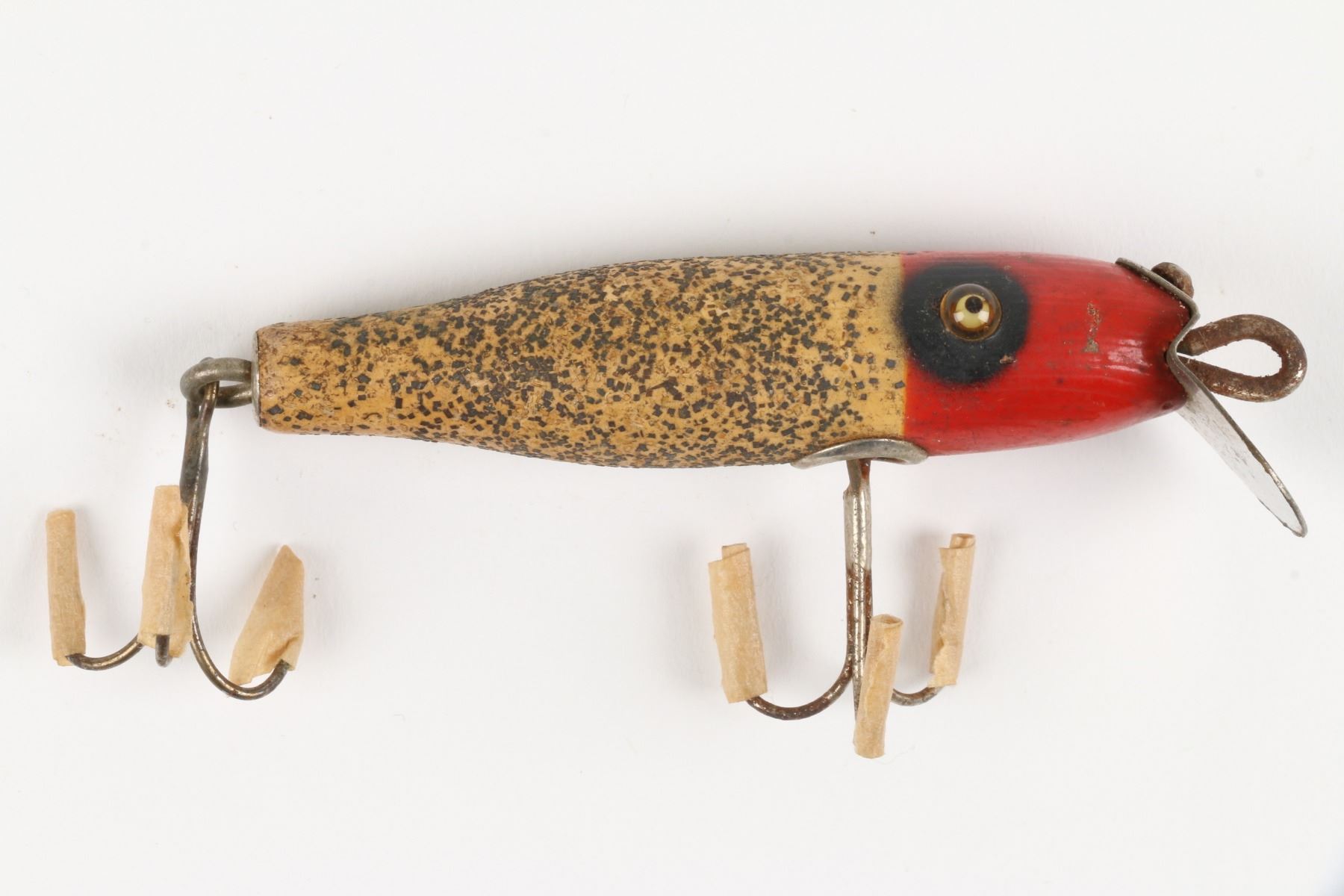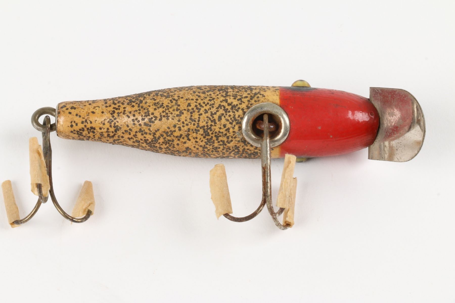 Lucky Strike Bait Works, Canada. 1930s. R/W with Flash. Material: Wood. Quantity: 1. Grade: VG. 3". Est. $125-150.