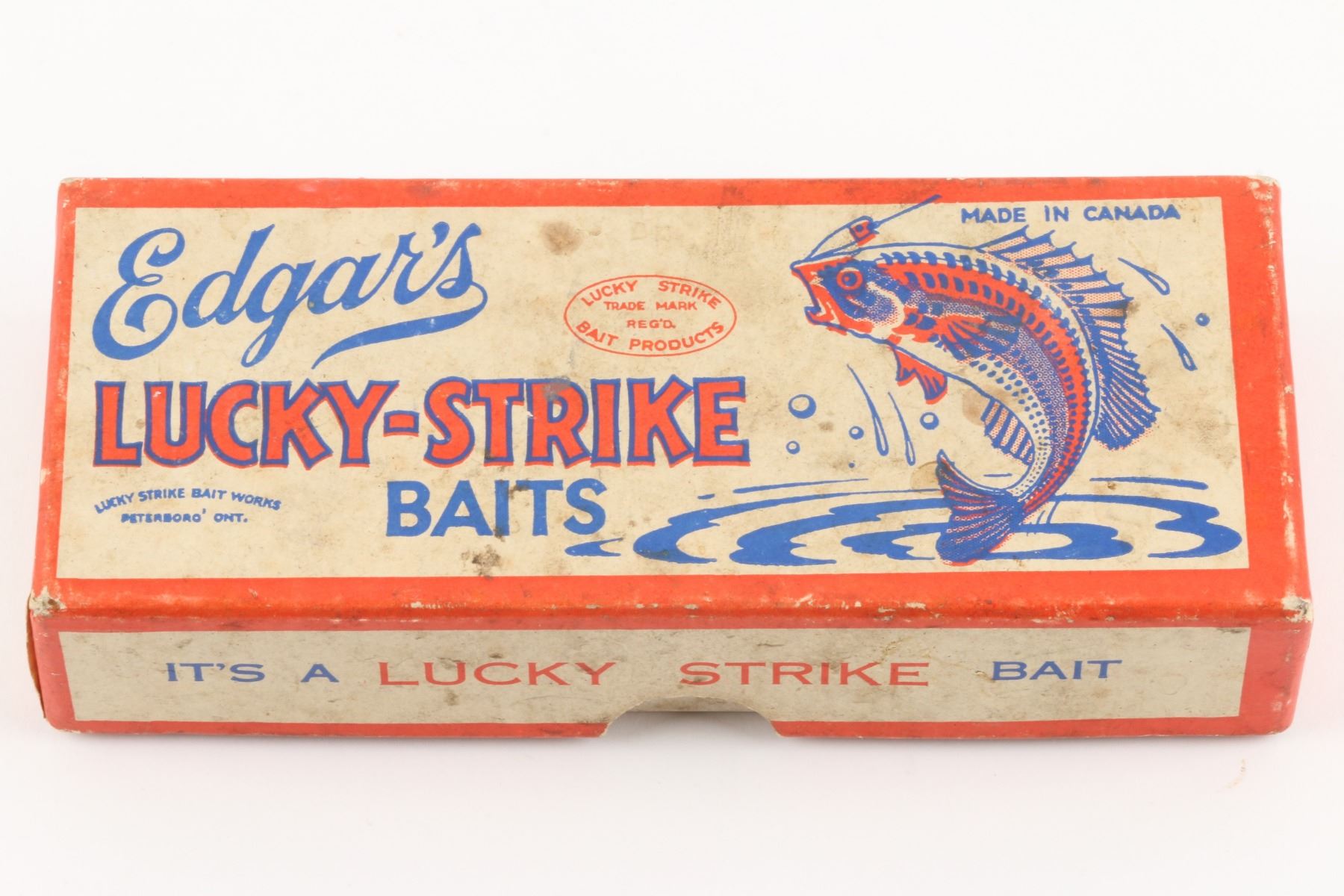 Lucky Strike, Canada. 1940s. Boxed. Material: wood. Quantity: 1. Grade: EX-. 5.25" x 2.25" x 1" Est. $100-150.