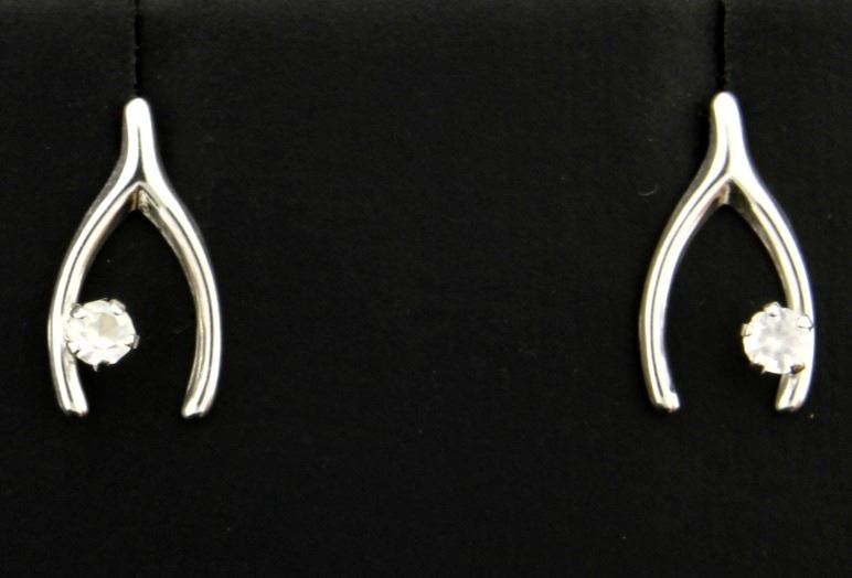 Beautiful and delicate darling "wishbone" style stud earrings in 14k white gold with a small sparkling cubic zircon in in each! 0.7g